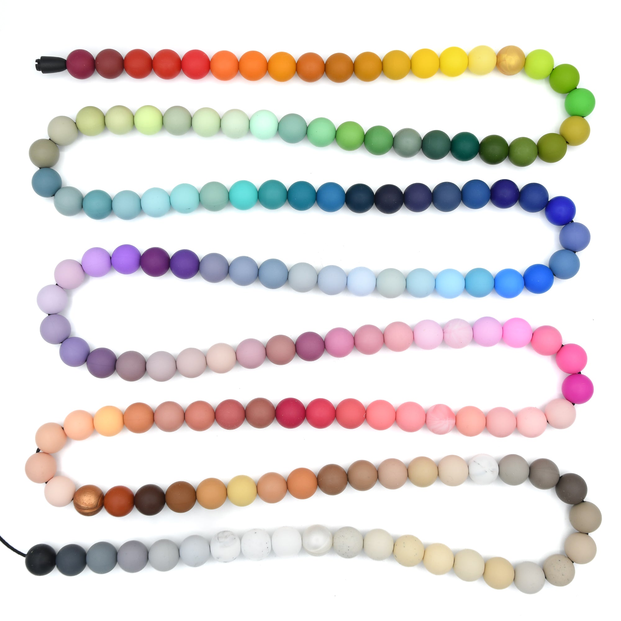 In tegenstelling tot eerdere koorden bevat dit koord geen glanzende kralen. Alleen kralen die niet slijten zijn in dit koord opgenomen. Deze kleuren zijn daardoor voor alle doeleinden te gebruiken. (Dus ook bijtartikelen voor baby's. Let hiermee natuurlijk wel op de afmetingen en de bevestiging!)