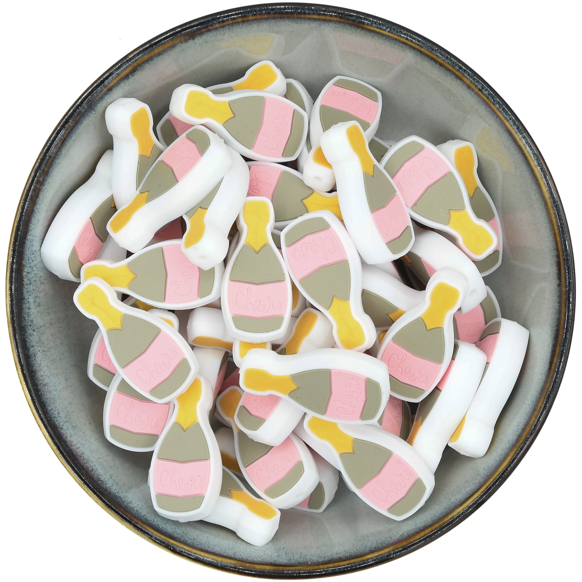 Figuurkraal in de vorm van een champagneflesje. Leuk om met de feestdagen te gebruiken op een wijnstopper of flesopener.