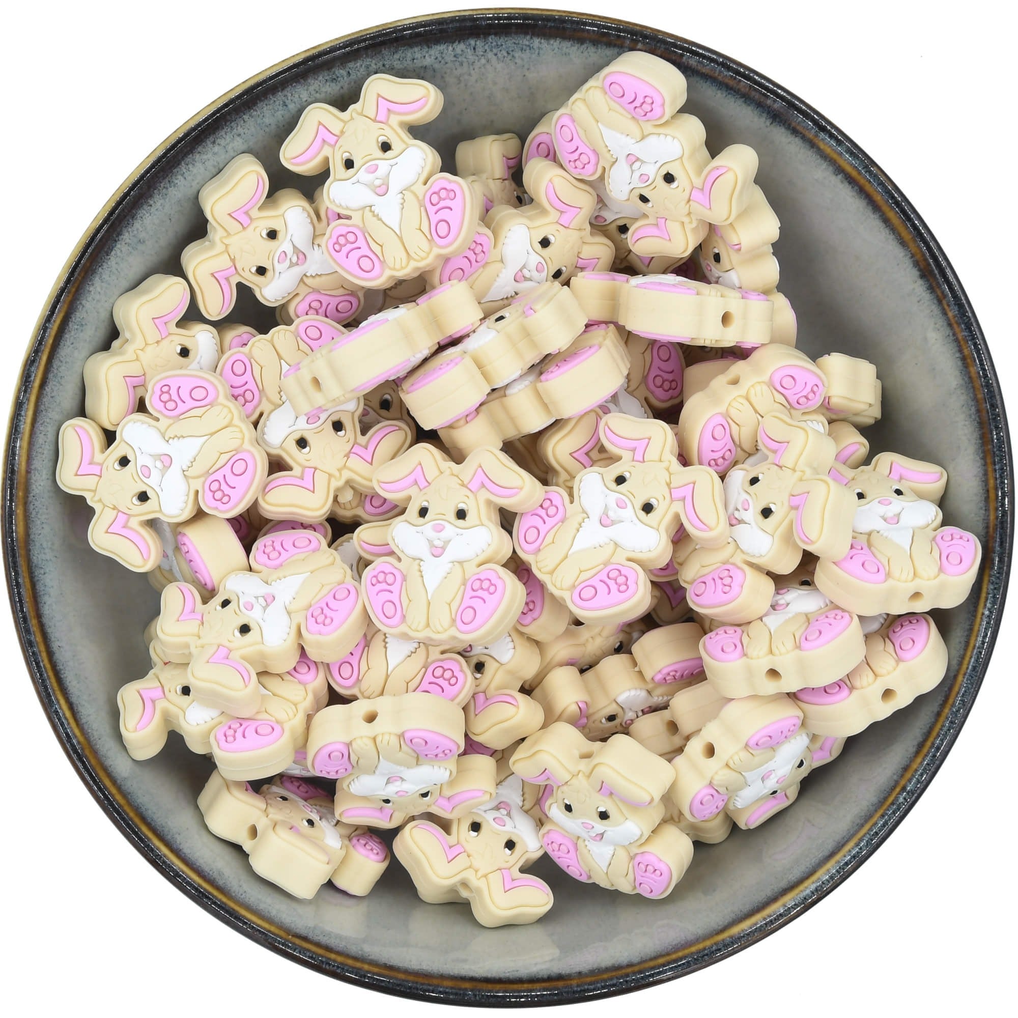 Siliconen figuurkraal in de vorm van een schattig konijntje.