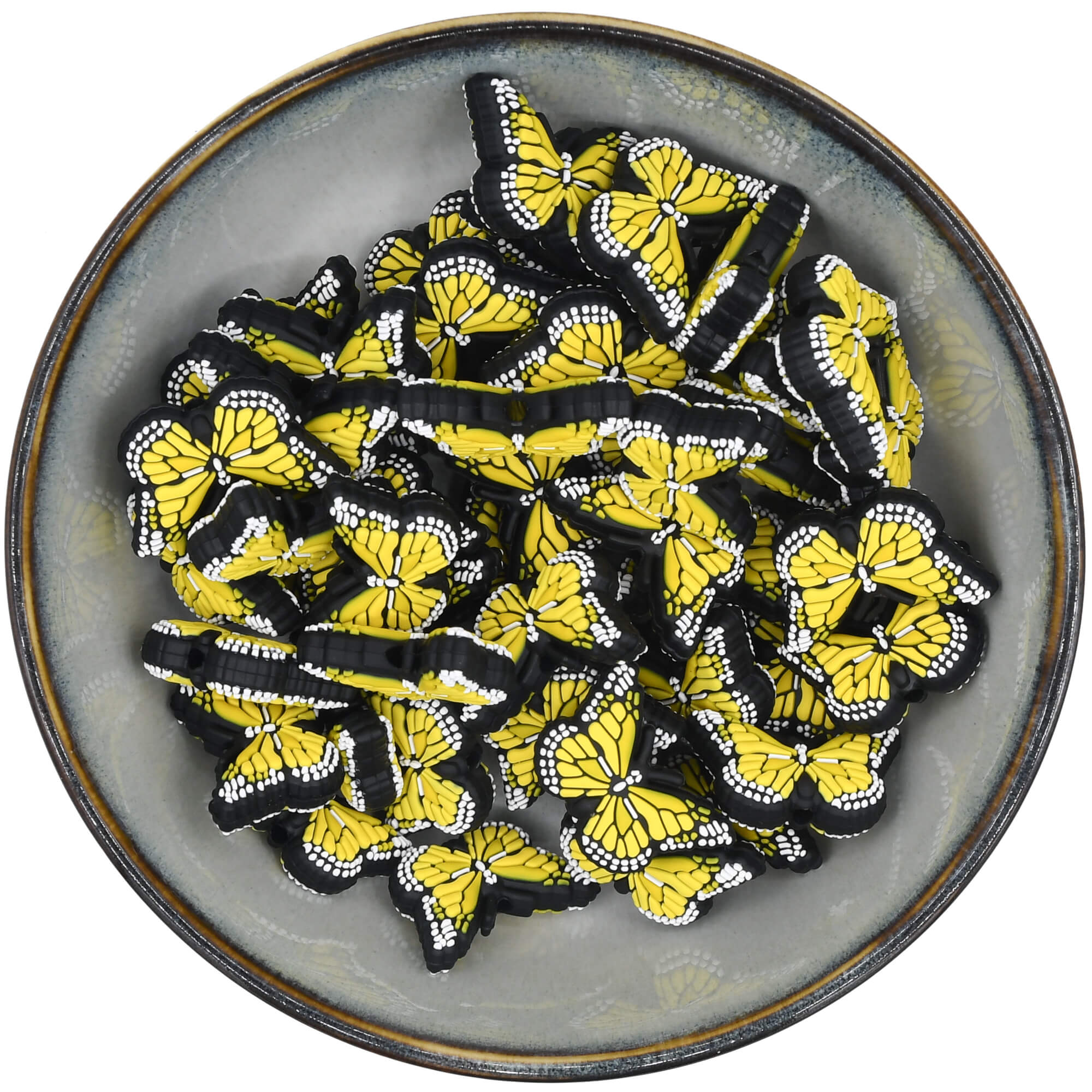 Prachtige kraal in de vorm van een gele vlinder.