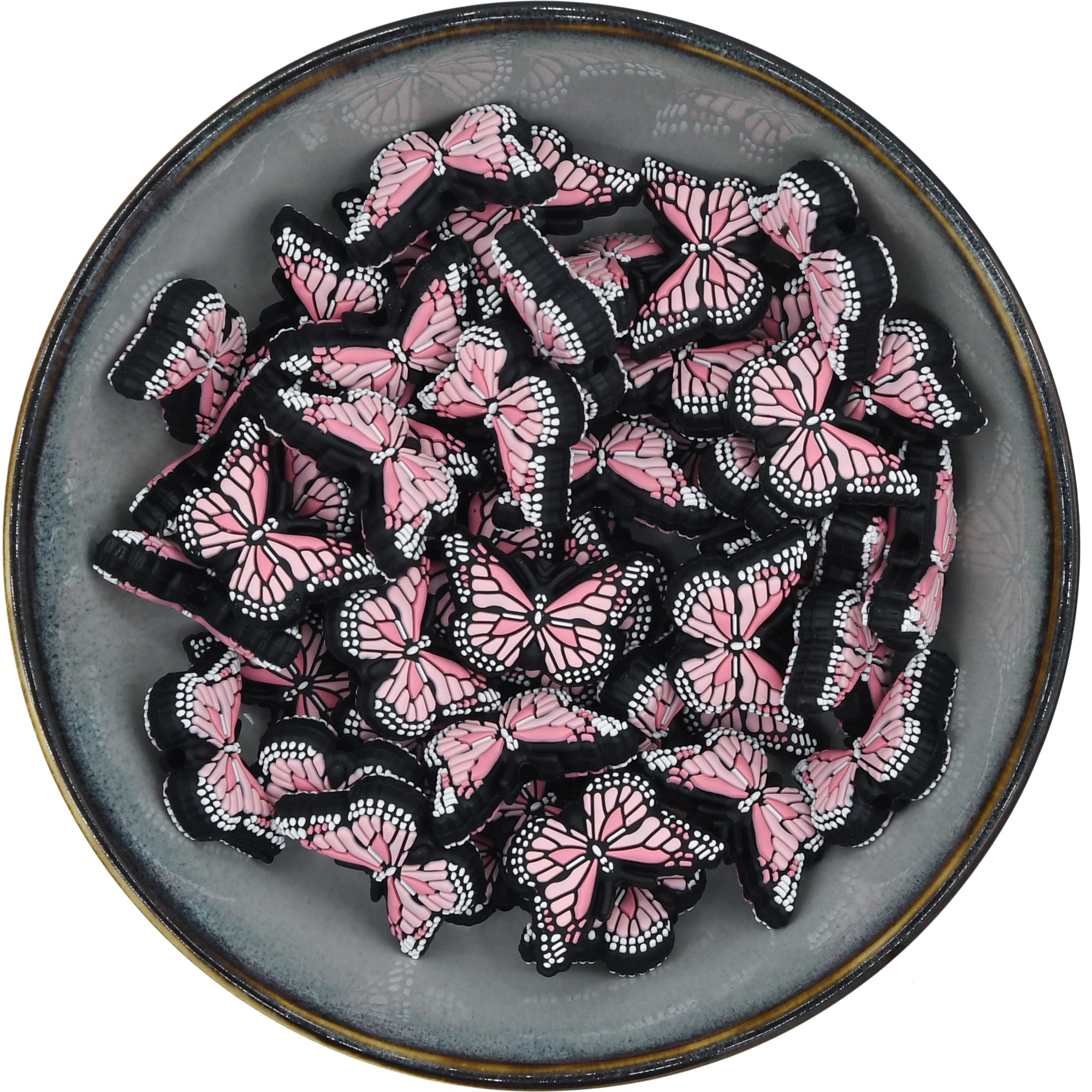 Prachtige kraal in de vorm van een roze vlinder.