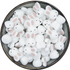 Deze leuke konijntjes heb ik zelf ontworpen. Ze zijn 20 mm breed en 30 mm hoog, hebben een mooi 3d-ontwerp, en tussen de oortjes past precies een kraal van 15 mm, zodat je ze mooi aansluitend op andere kralen kunt gebruiken.