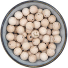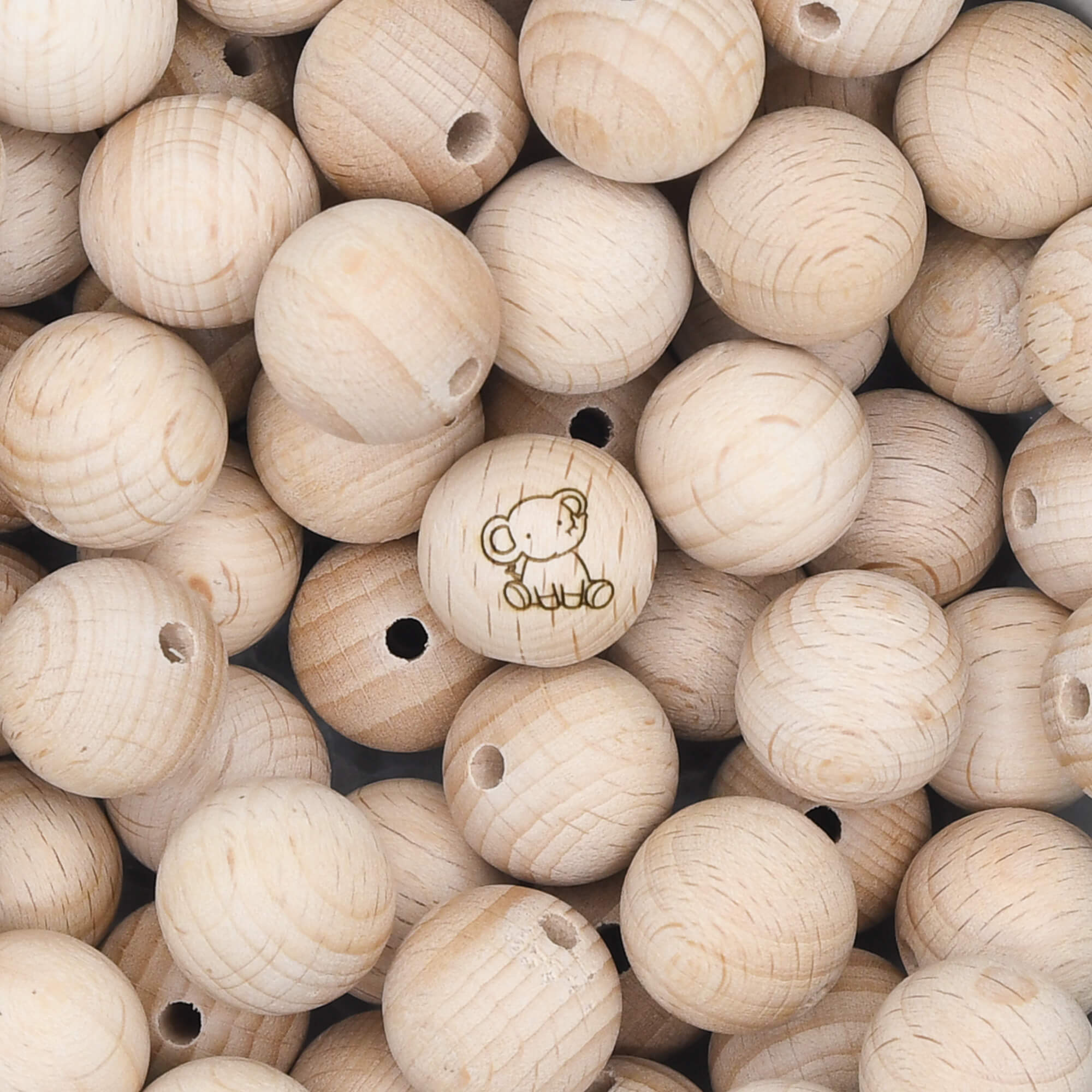 Onbewerkte beukenhouten kraal van 18 mm met een gelaserde afbeelding van een olifantje.