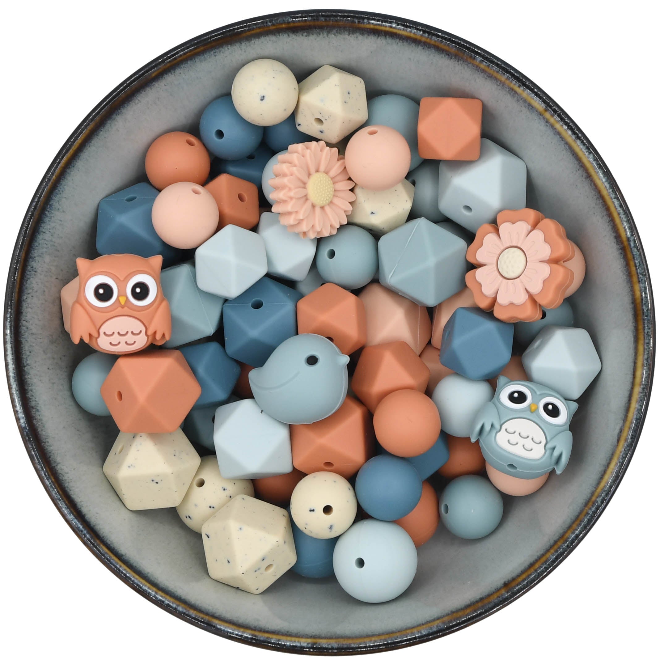 In deze mix vind je de kleuren Arctic Blue, Grijsblauw, Licht Grijsblauw, Donker Zalmroze, Zalmroze en Crème met Spikkels, en 5 leuke figuurtjes.