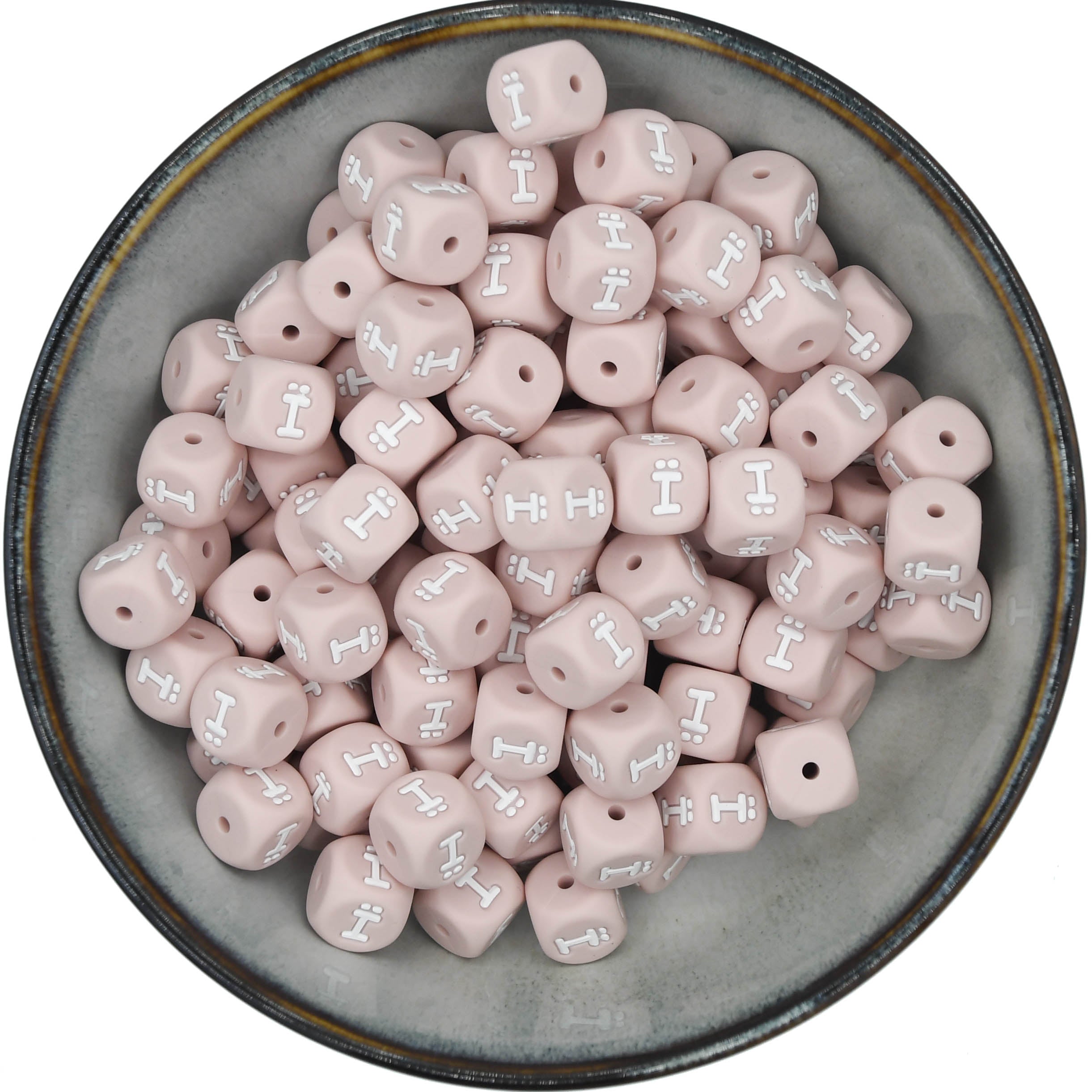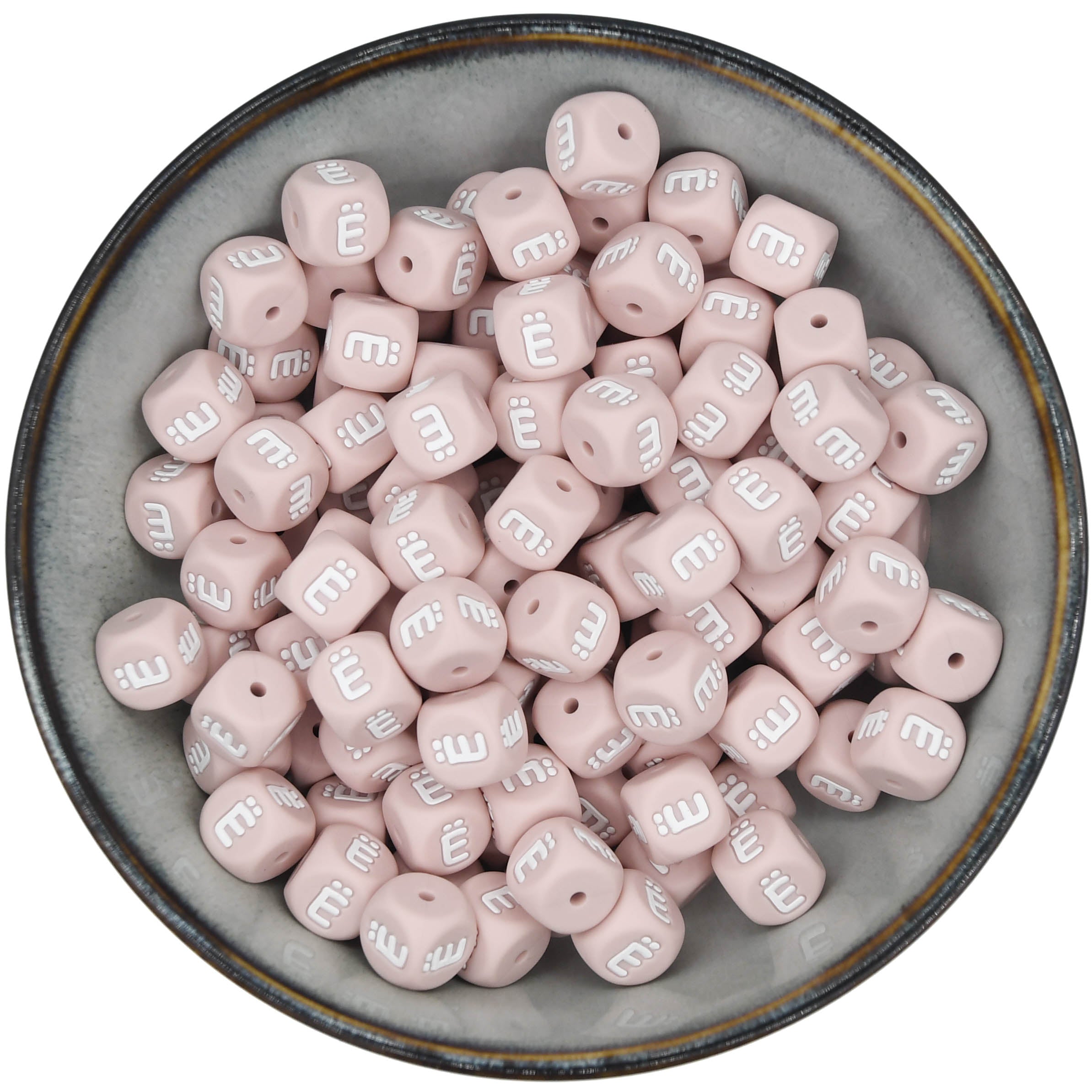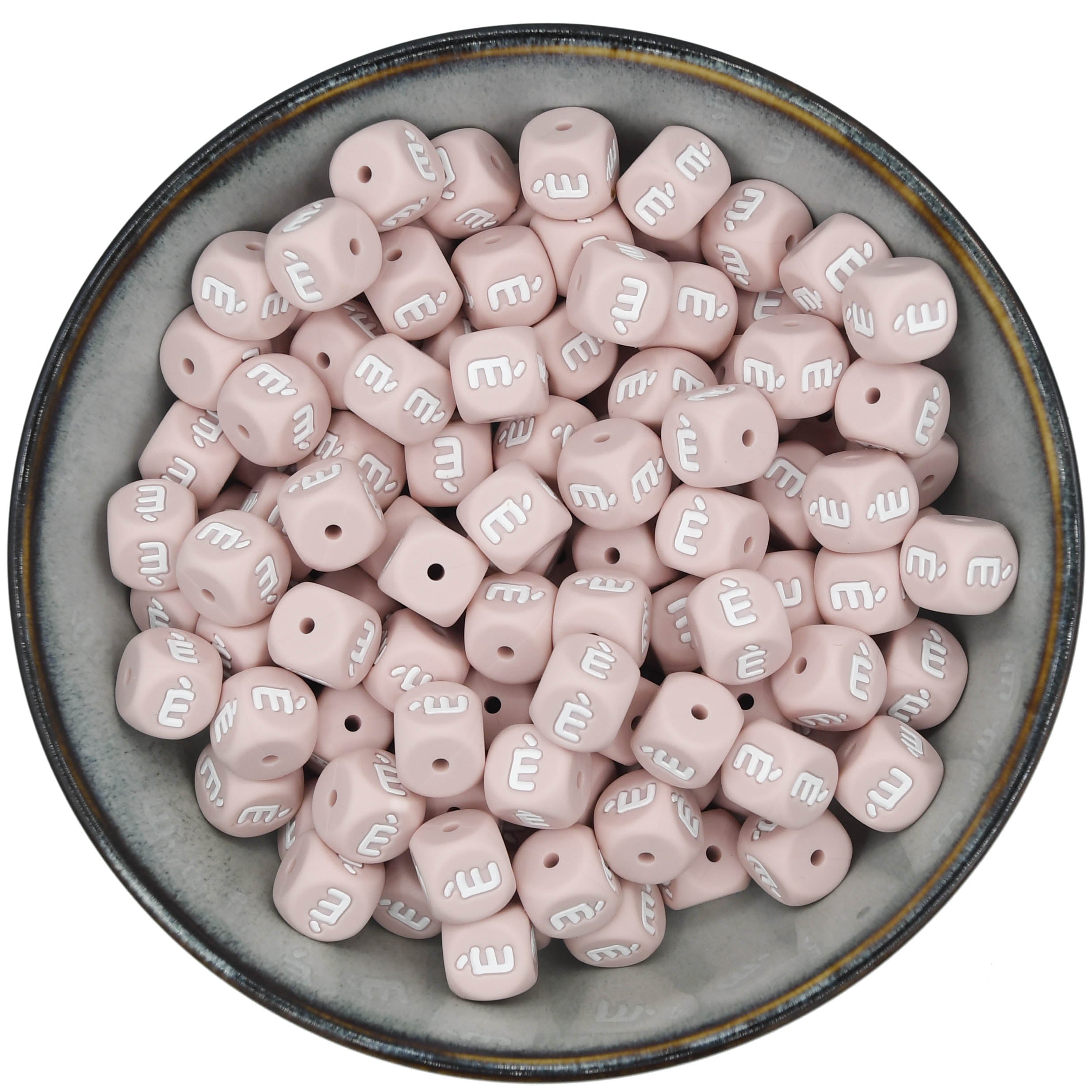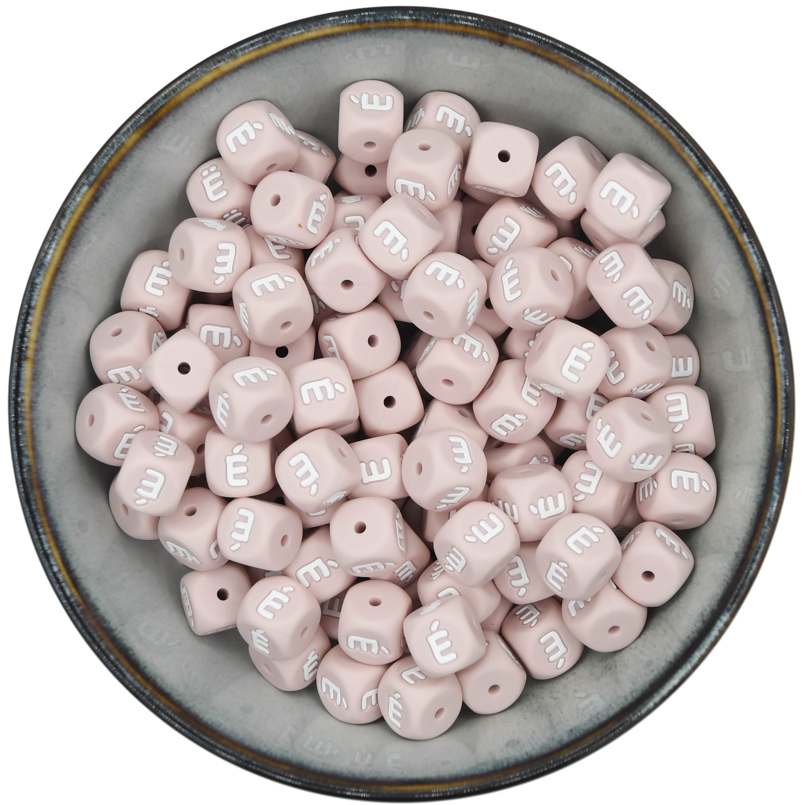 Letterkralen van 12 mm in mijn eigen kleur Licht Oudroze. Deze kralen worden speciaal voor mij gemaakt, en combineren super met allerlei andere kralen uit het assortiment, zoals bijvoorbeeld de roze blaadjesprint.