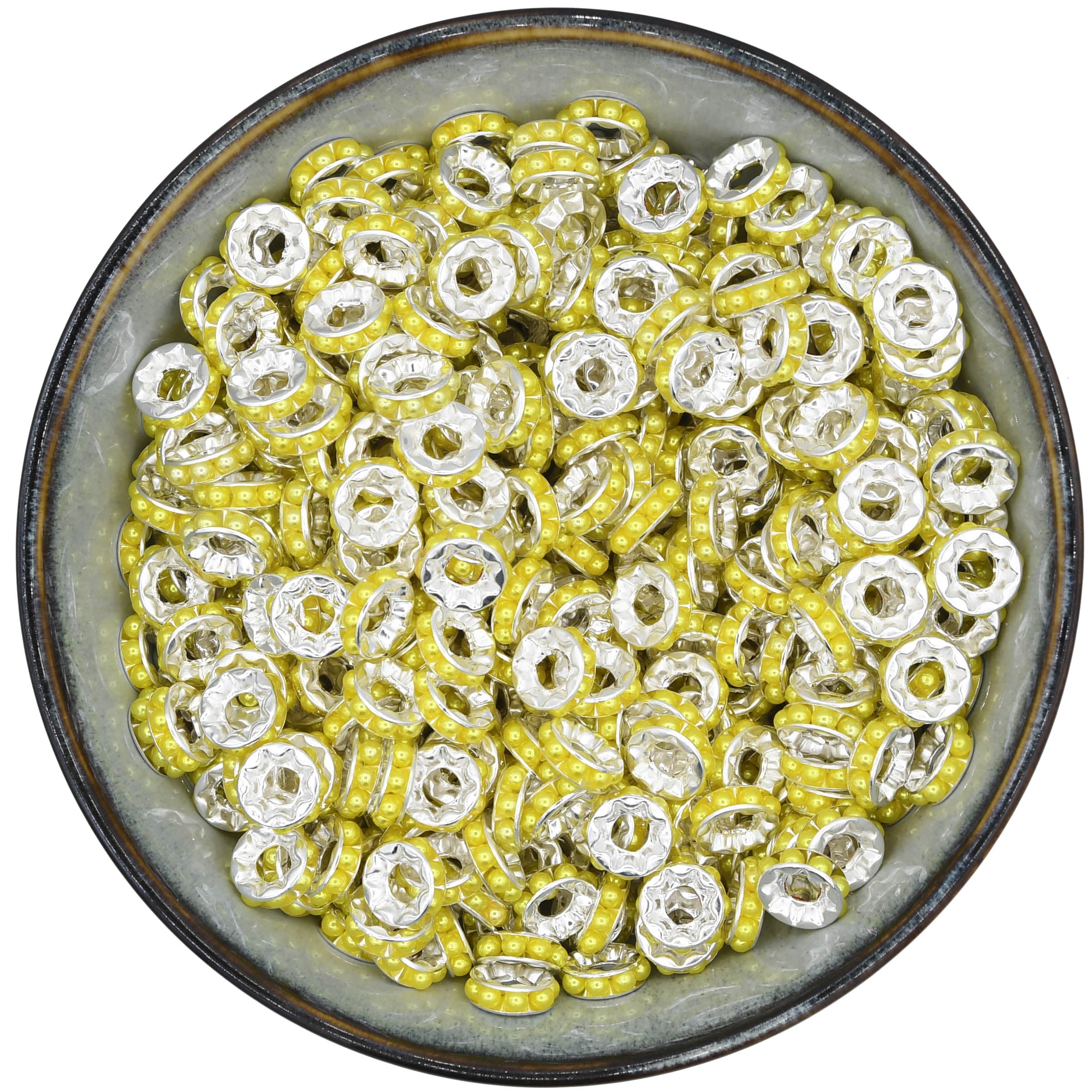 Voeg wat extra 'bling' toe aan je creaties met deze leuke kunststof tussenschijfjes met pareltjes.