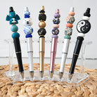Er passen 6 pennen in het rekje, en het is eenvoudig in elkaar te zetten en weer uit elkaar te halen, zodat je het plat kunt vervoeren. Het rekje is gemaakt van hard transparant plastic.