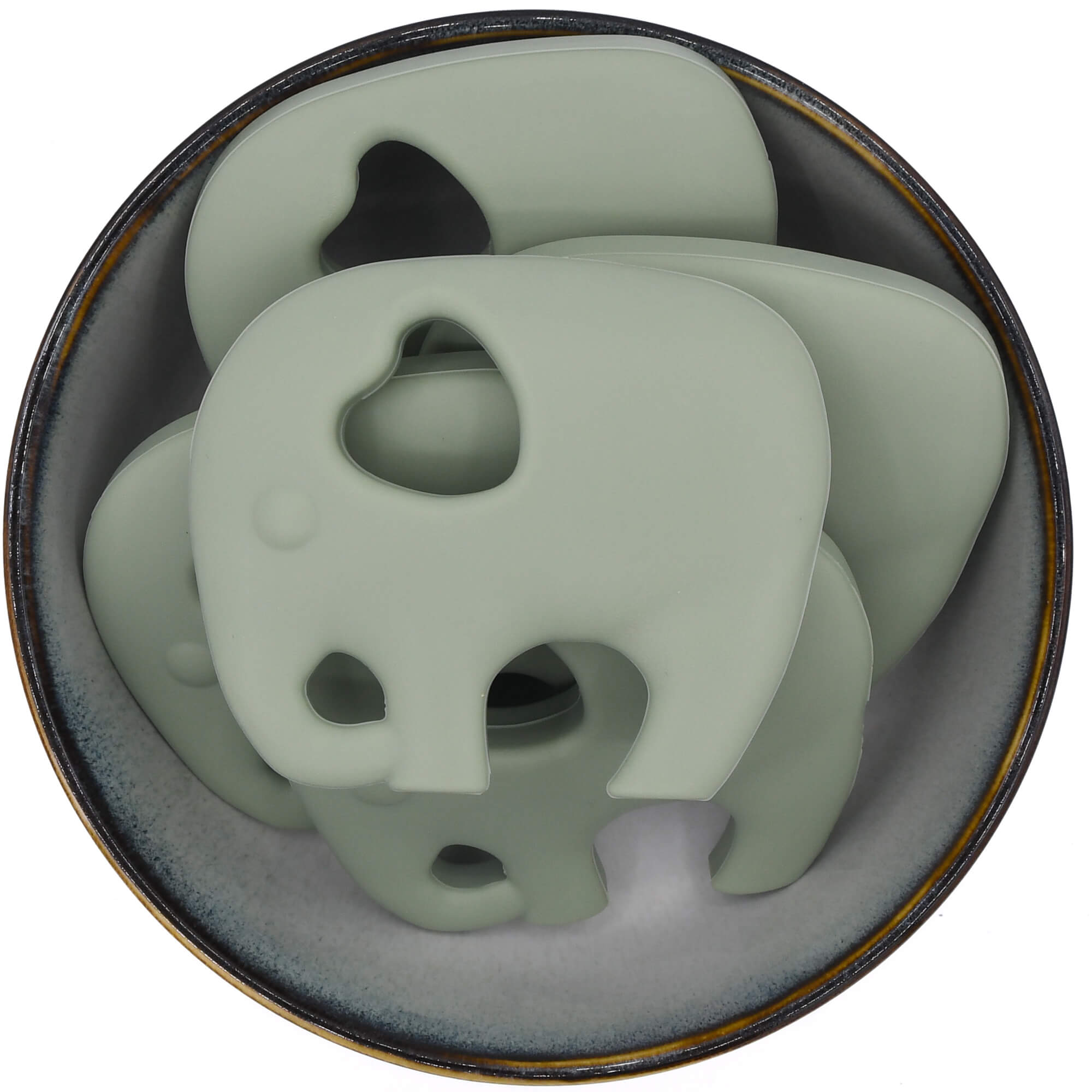 Groot siliconen bijtfiguur in de vorm van een olifant, gemaakt in mijn eigen kleur Oudgroen.