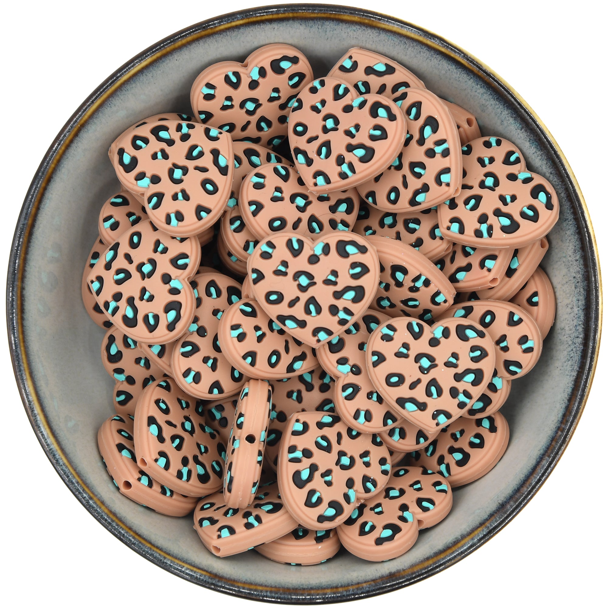 Siliconen figuurkraal in de vorm van een hart met panterprint.
