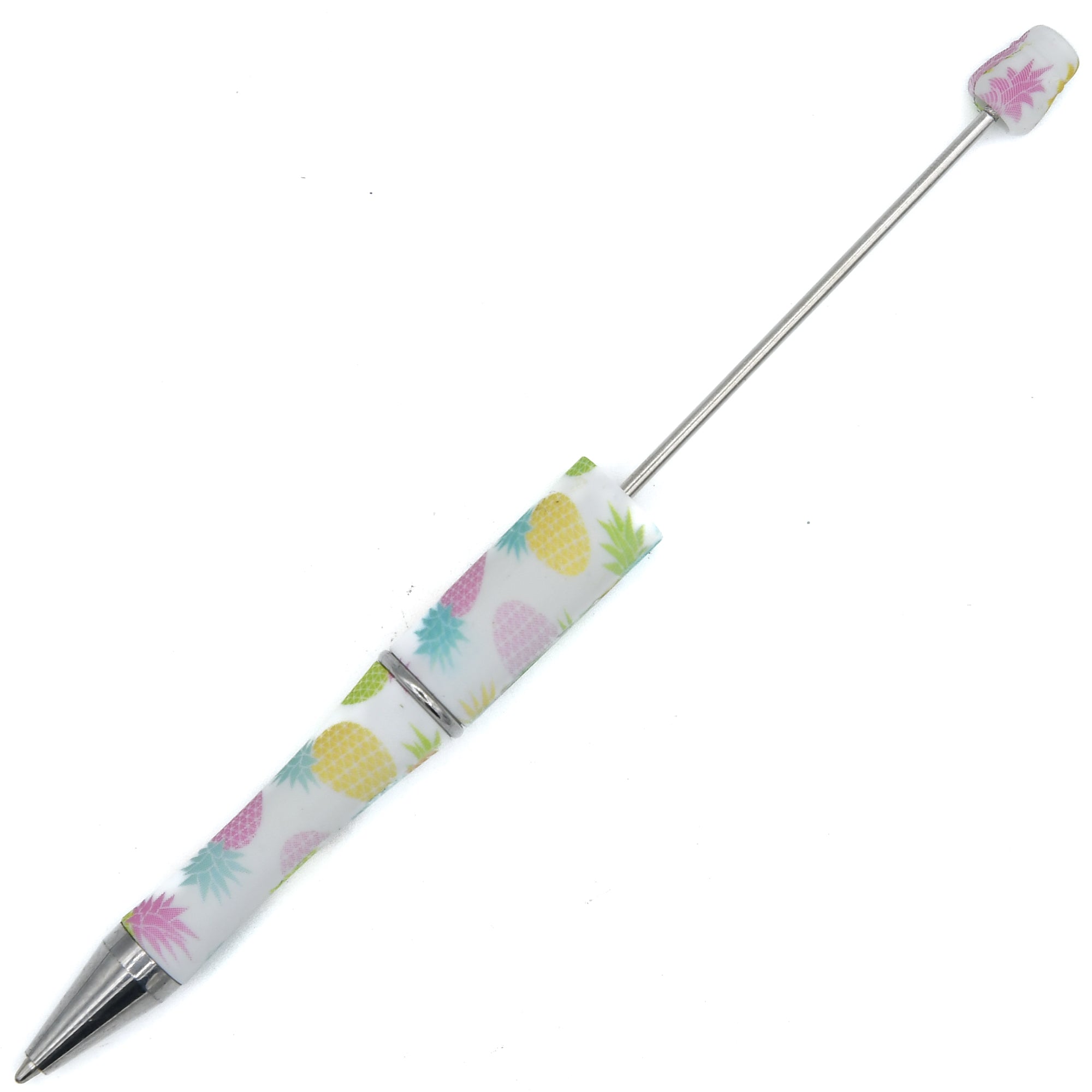 Deze pen heeft een leuke zomerse print van ananassen in groen, geel, knalroze en turquoise/blauw.