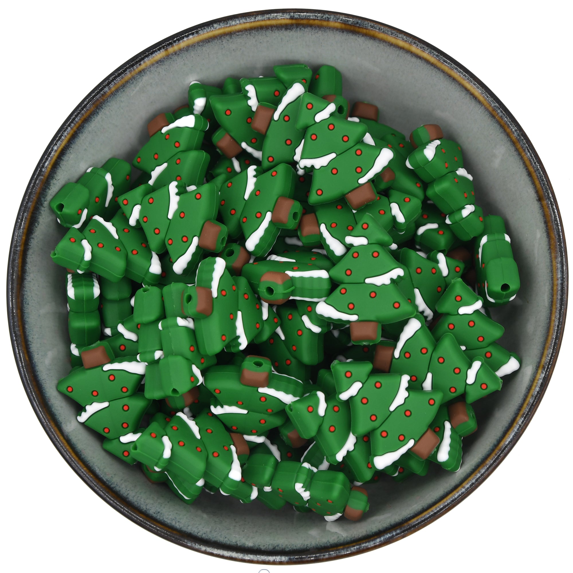 Mooie siliconen kraal in de vorm van een kerstboom met sneeuw.