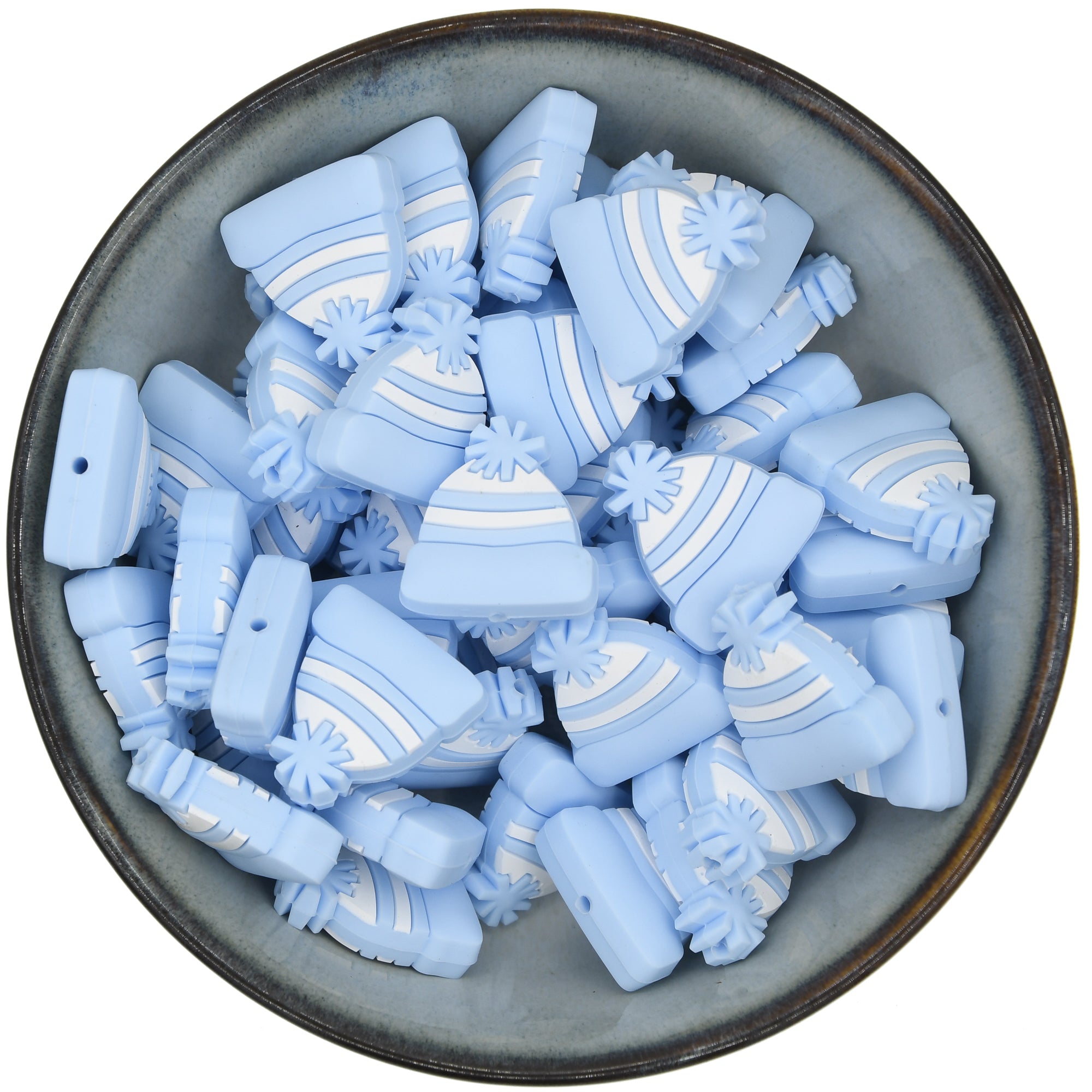 Grappige figuurkraal in de vorm van een gebreide muts. Leuk aan bijvoorbeeld een sleutelhanger of op een pen.