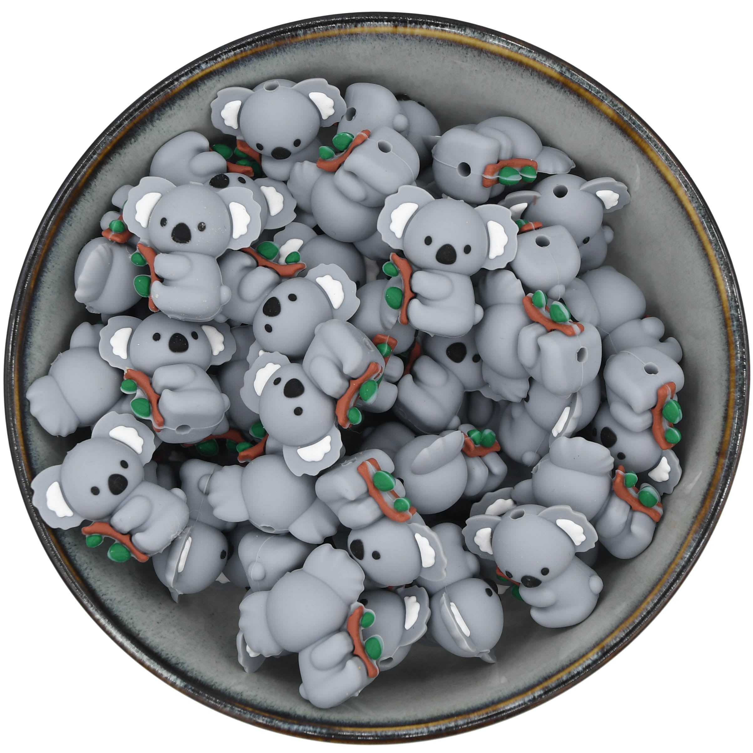 Figurperle aus Silikon in Form eines schönen 3D-Koalabären auf einem Ast.