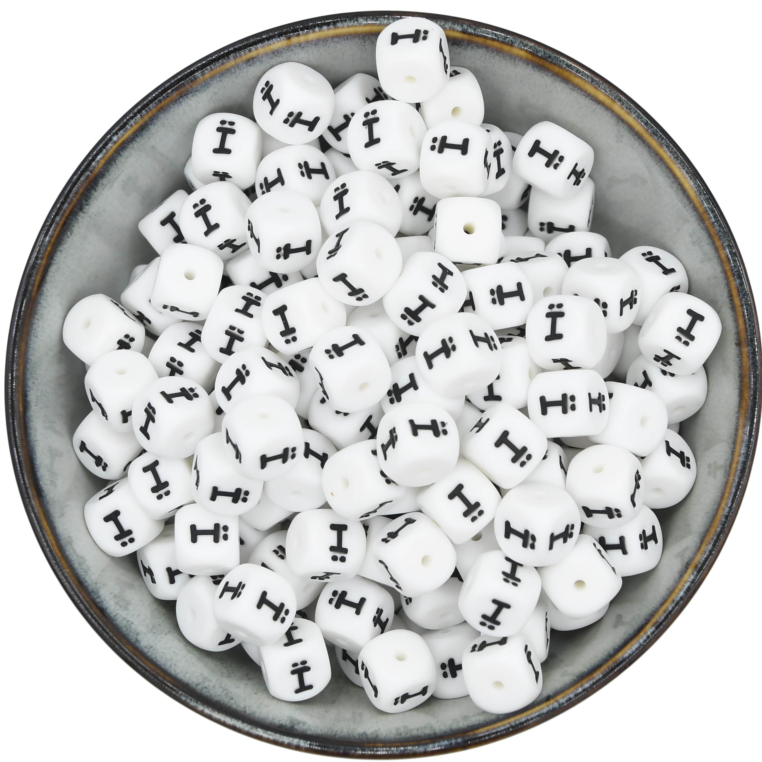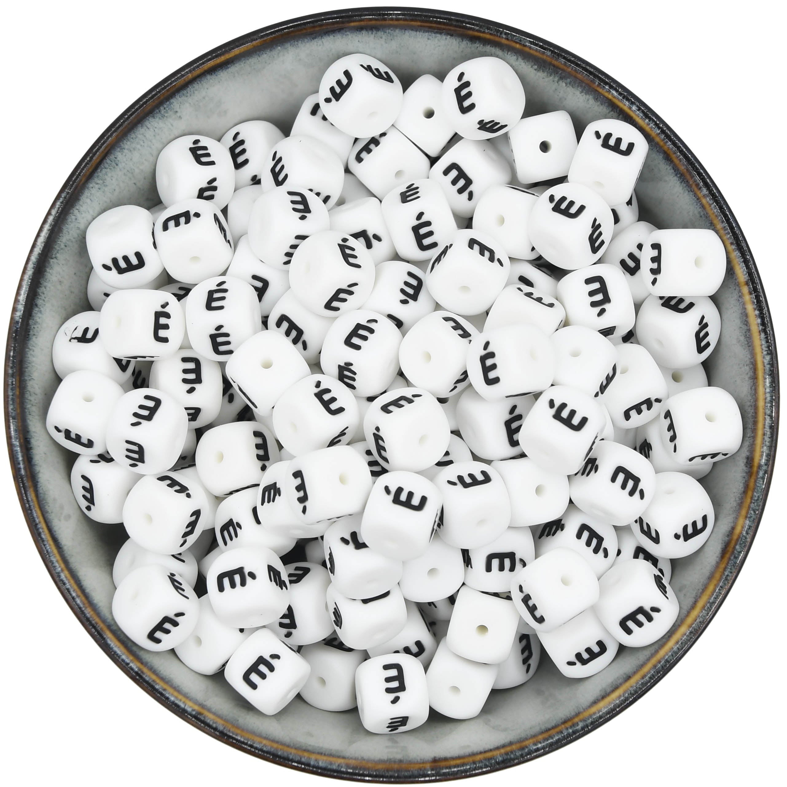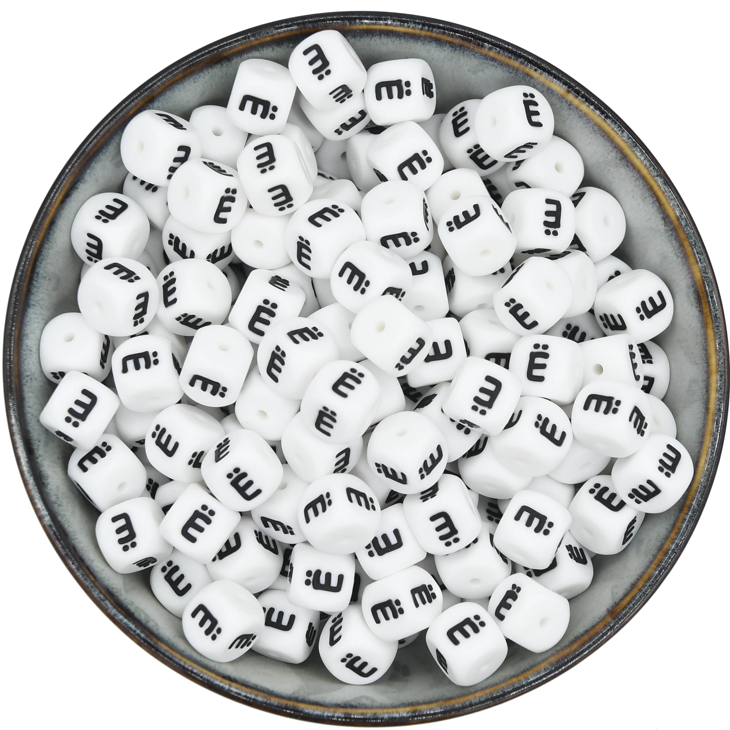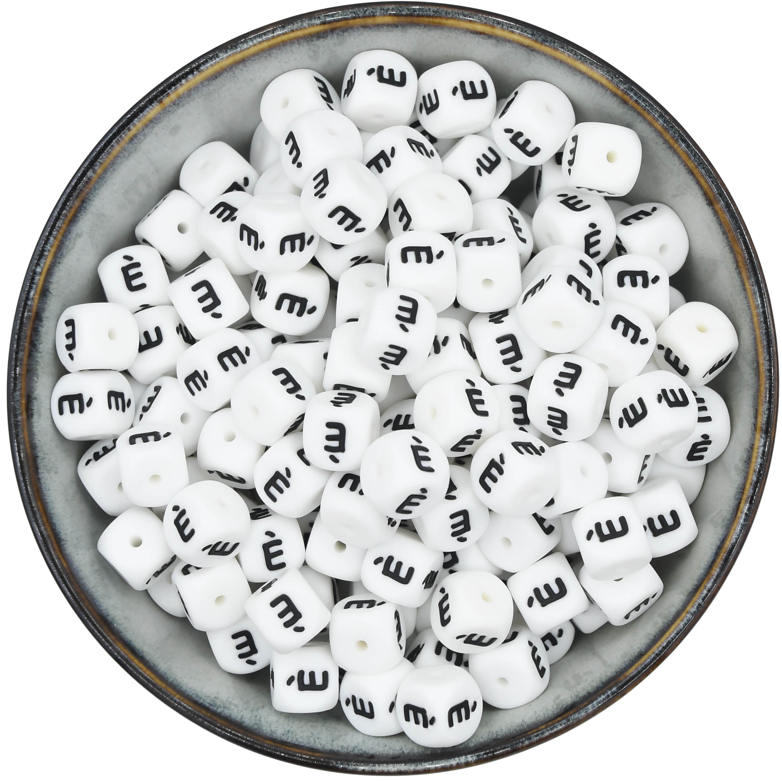 Diese Buchstabenperlen sind die am häufigsten verwendeten Silikon-Buchstabenperlen, da sie mit allen Farben kombinierbar sind.