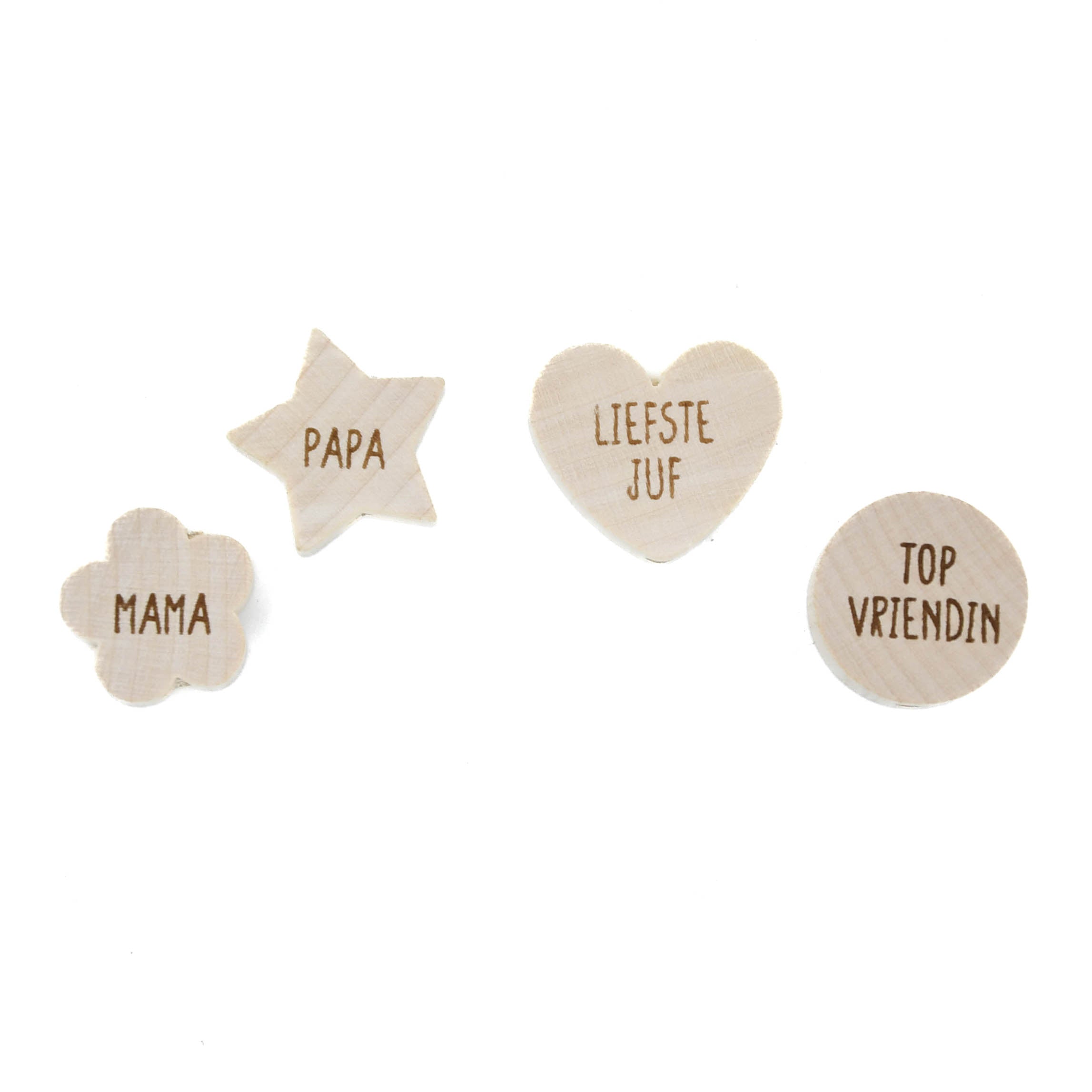Holzperlen mit allerlei schönen Texten. Kreieren Sie damit fantastische persönliche Geschenke.