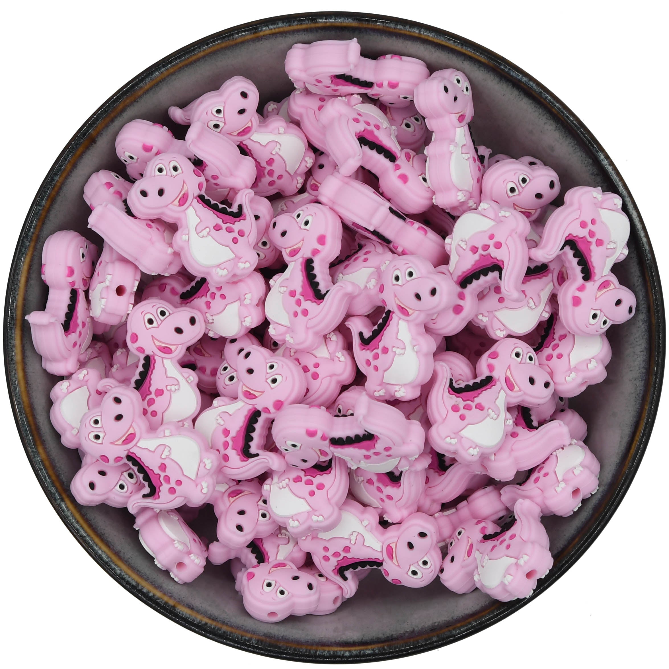 Silicone focal bead in the shape of a cheerful dinosaur.