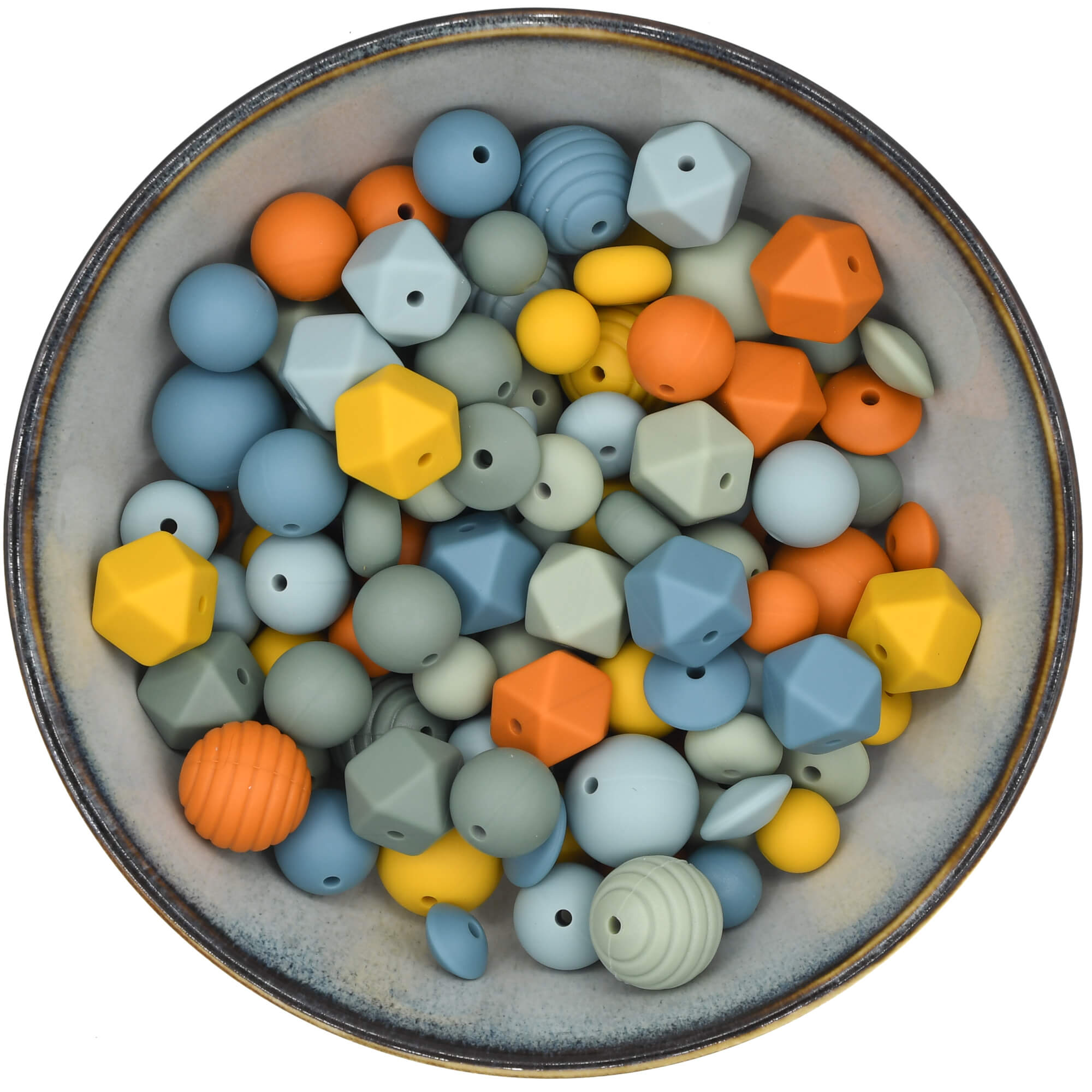 Bead mix with beads in all shapes and sizes: 12 mm, 15 mm, 19 mm, mini-hexagon, ribbed bead, small spacer, large spacer, lantern and small abacus.