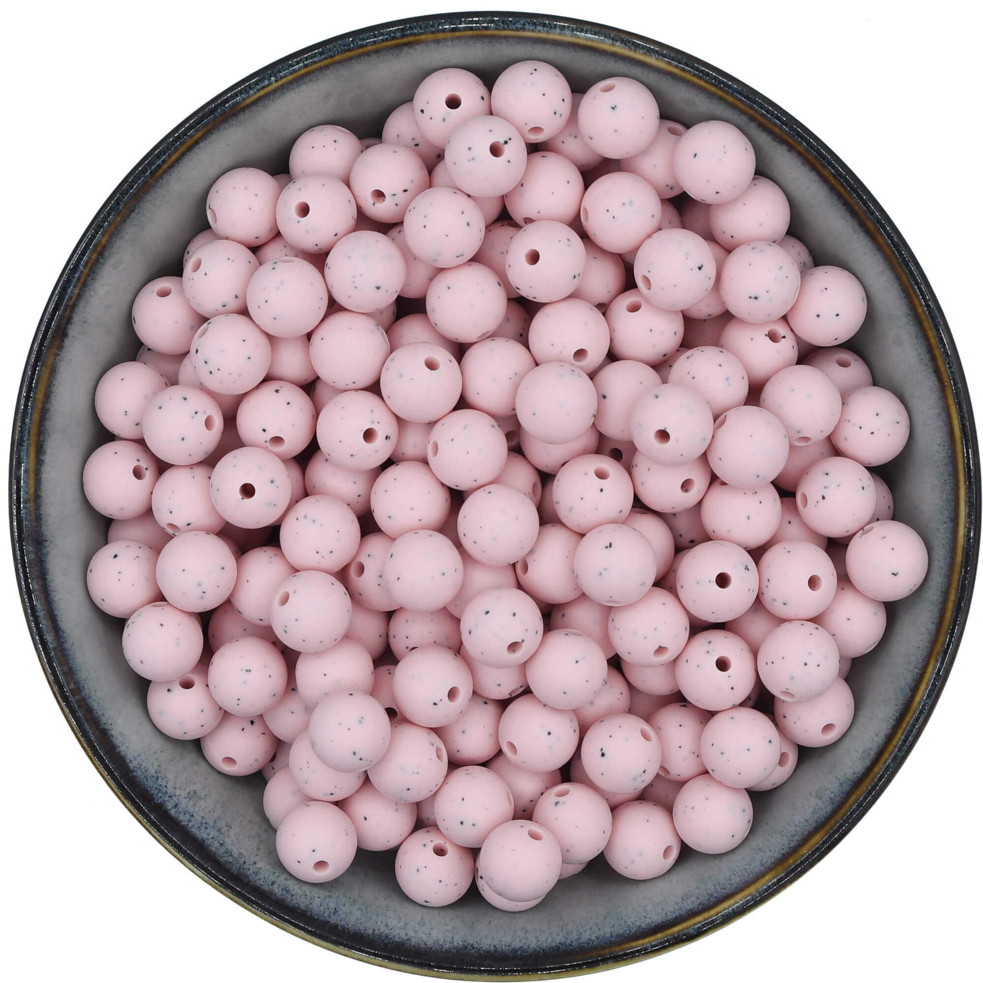 I think soft pink is a really lovely color. Very subtle and easy to combine. These beads have black speckles, for extra variety.