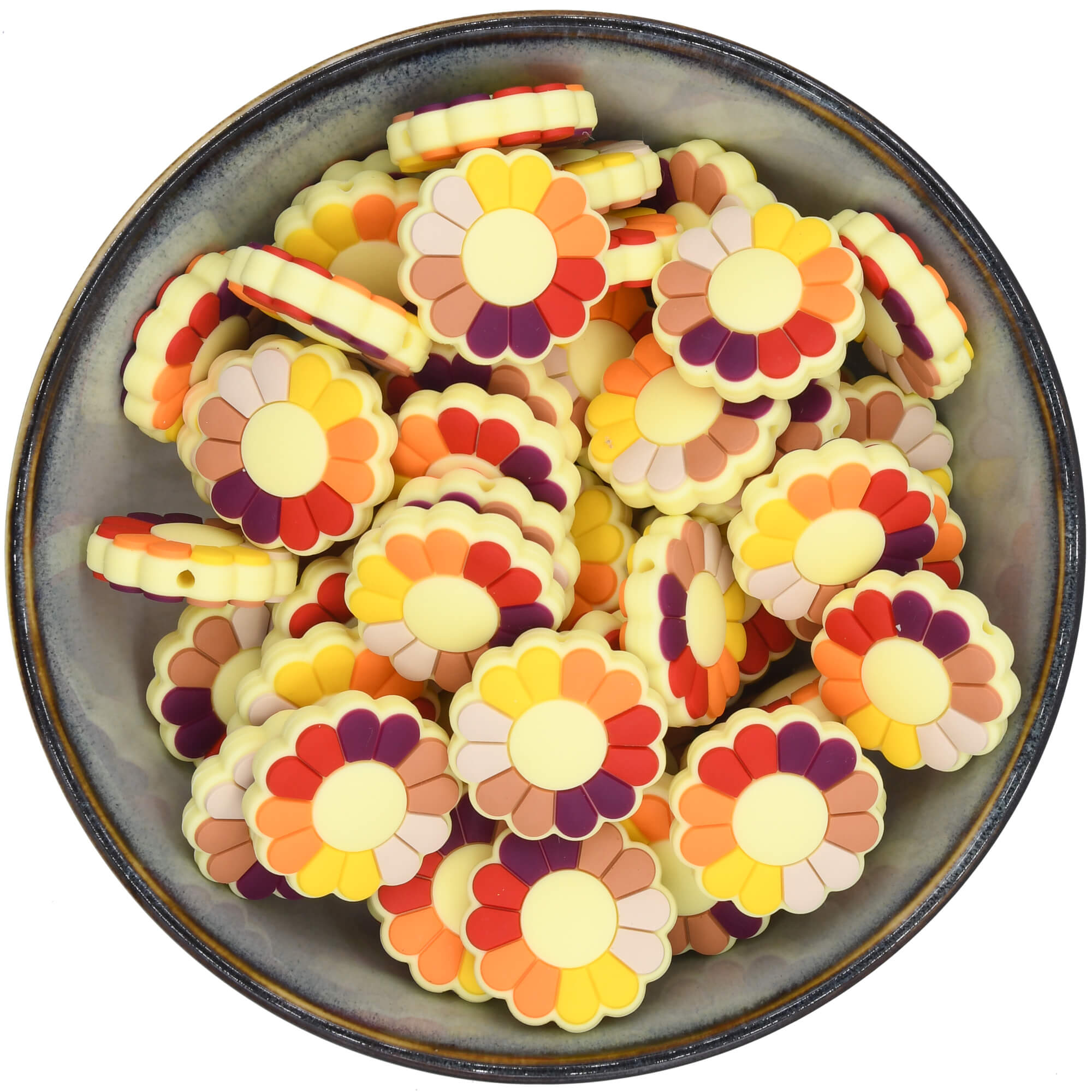 Large, multi-colored flower bead with a diameter of 28 mm.