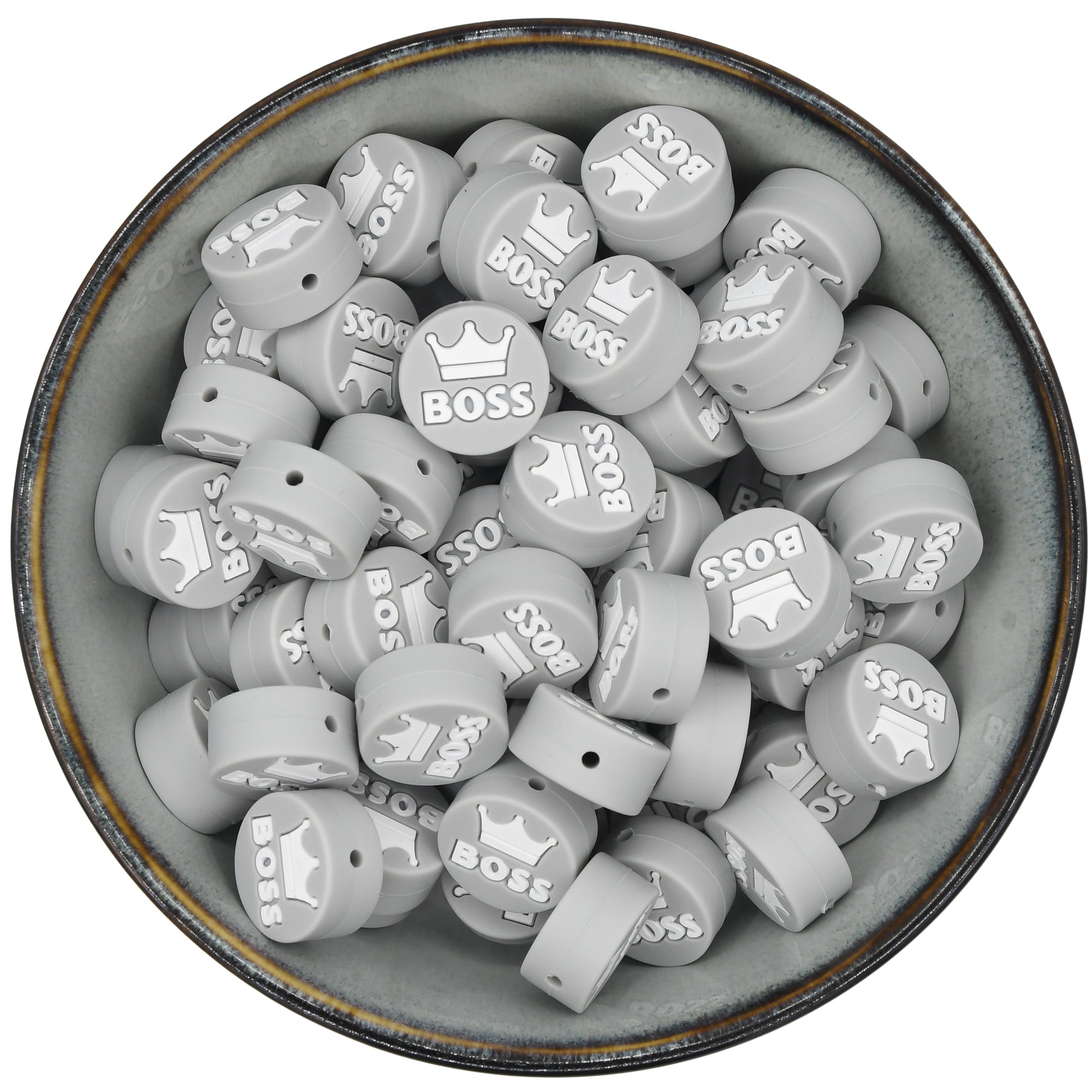 Nice flat round bead with the inscription 'BOSS' and a crown.