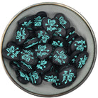 Silicone focal bead in the shape of a heart with the text "Dog Mom"