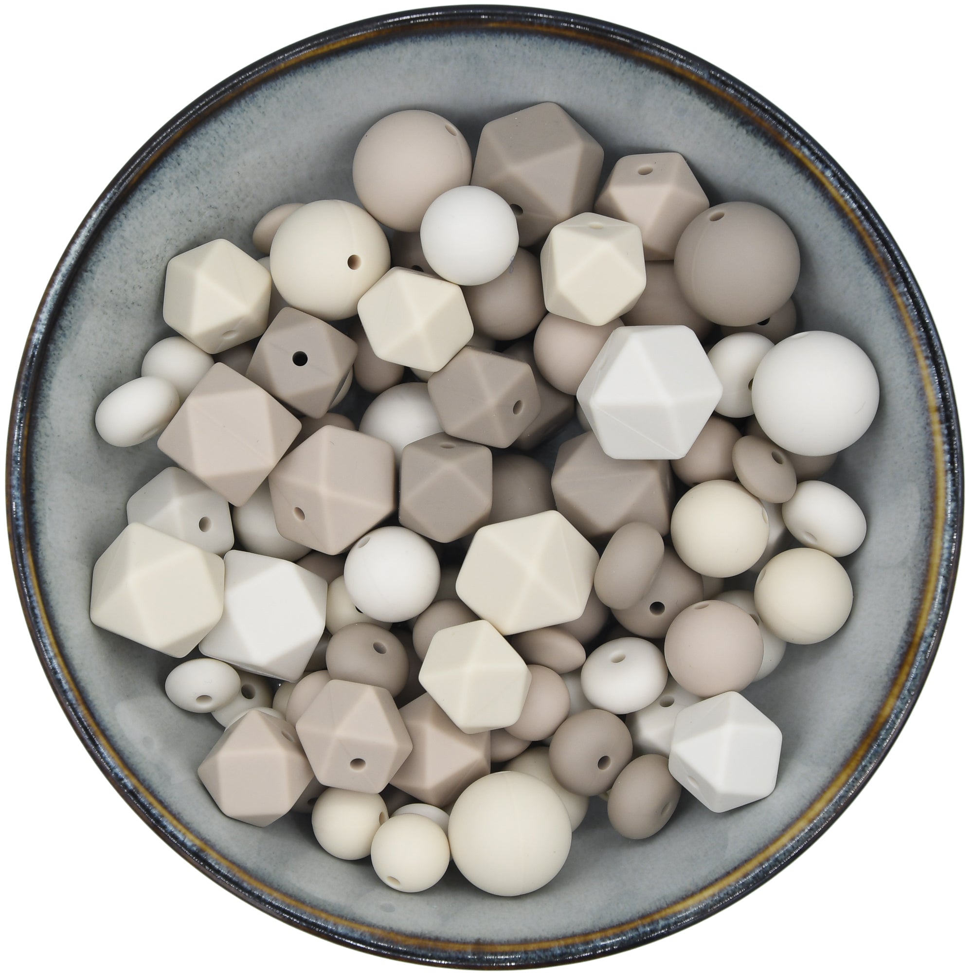 Bead mix with the shapes 'Abacus 14mm', 'Mini-Hexagon', 'Small Disc', 'Hexagon', 'Round bead 12mm', 'Round bead 15mm' and 'Round bead 19mm'.