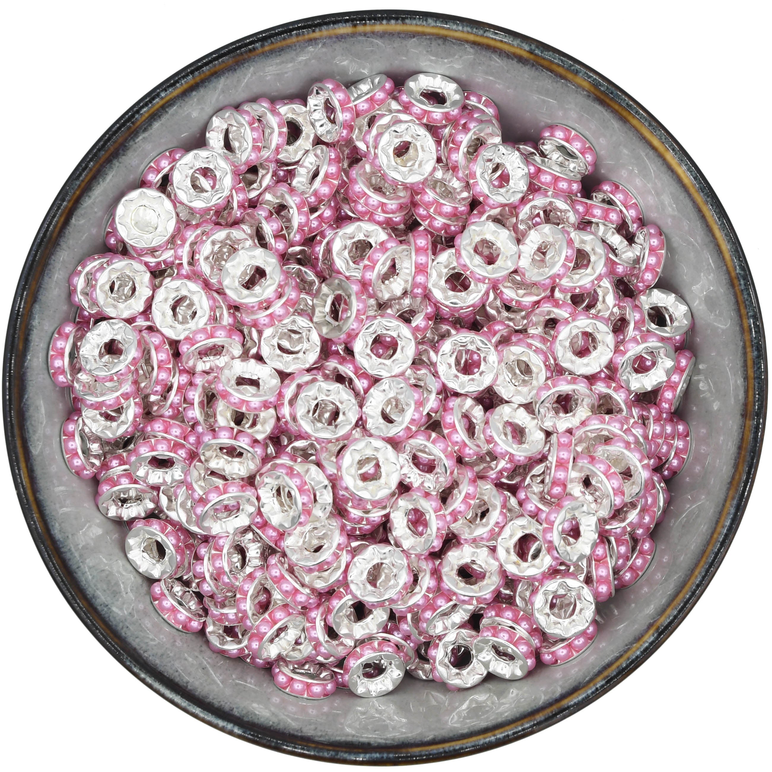 Añade un toque extra de "bling" a tus creaciones con estos divertidos espaciadores de plástico con perlas.
