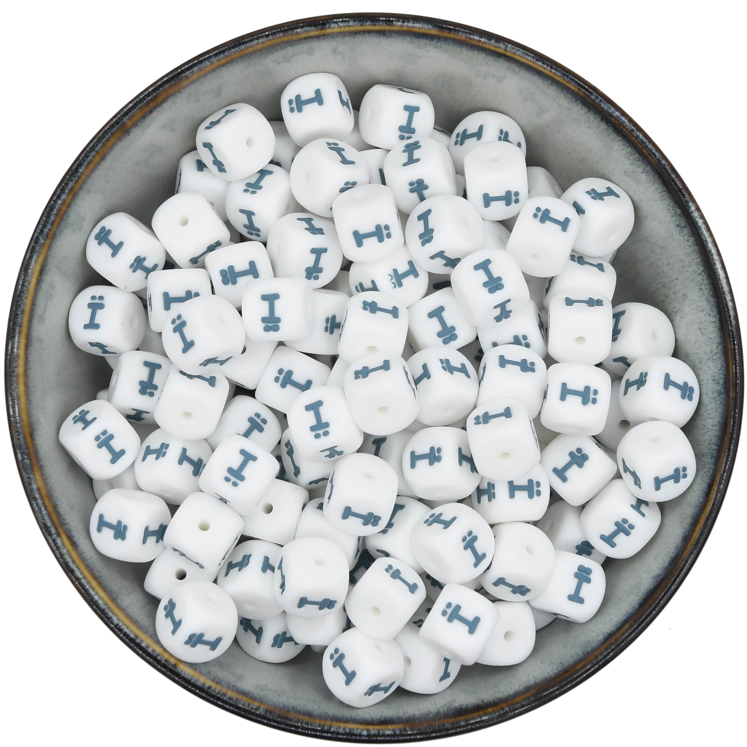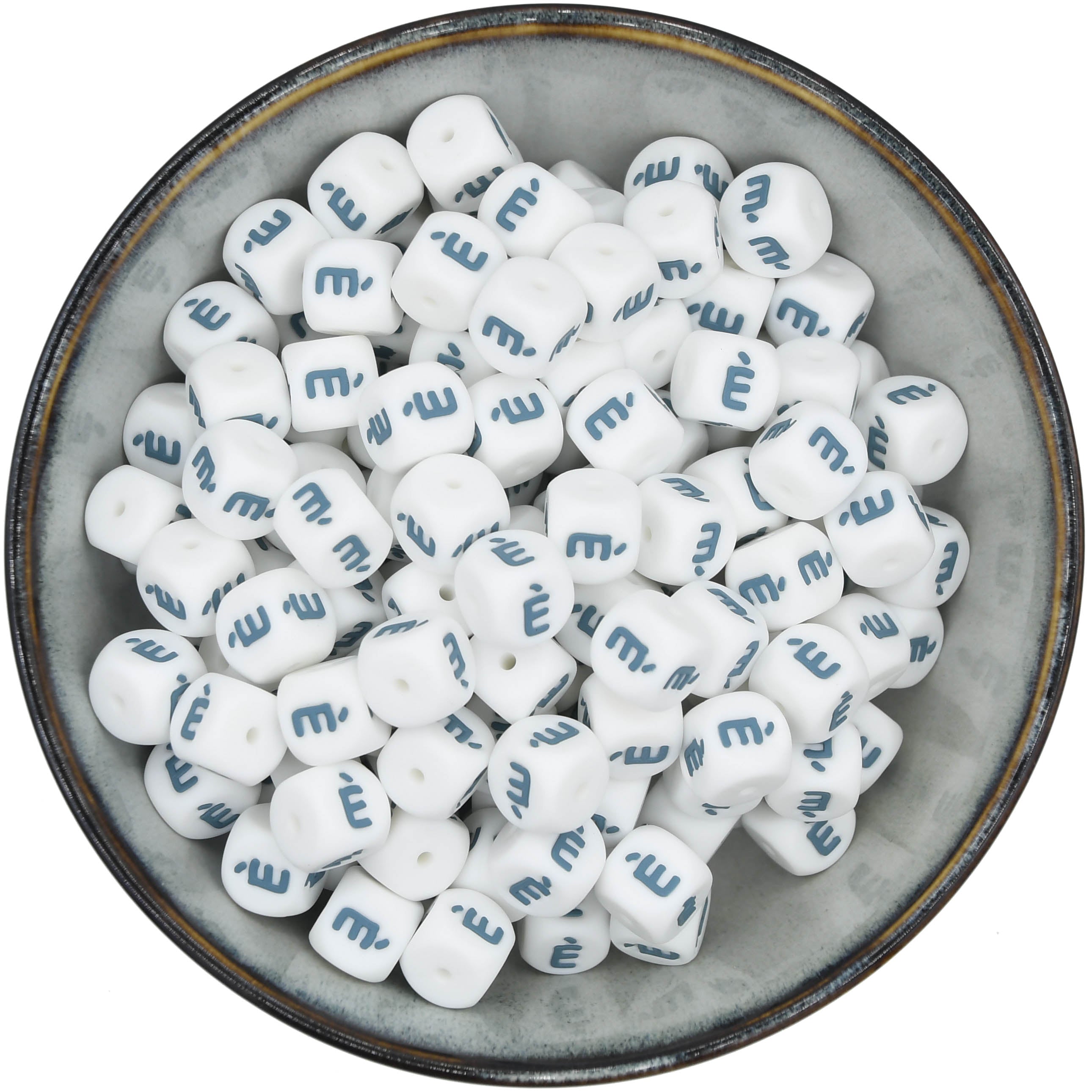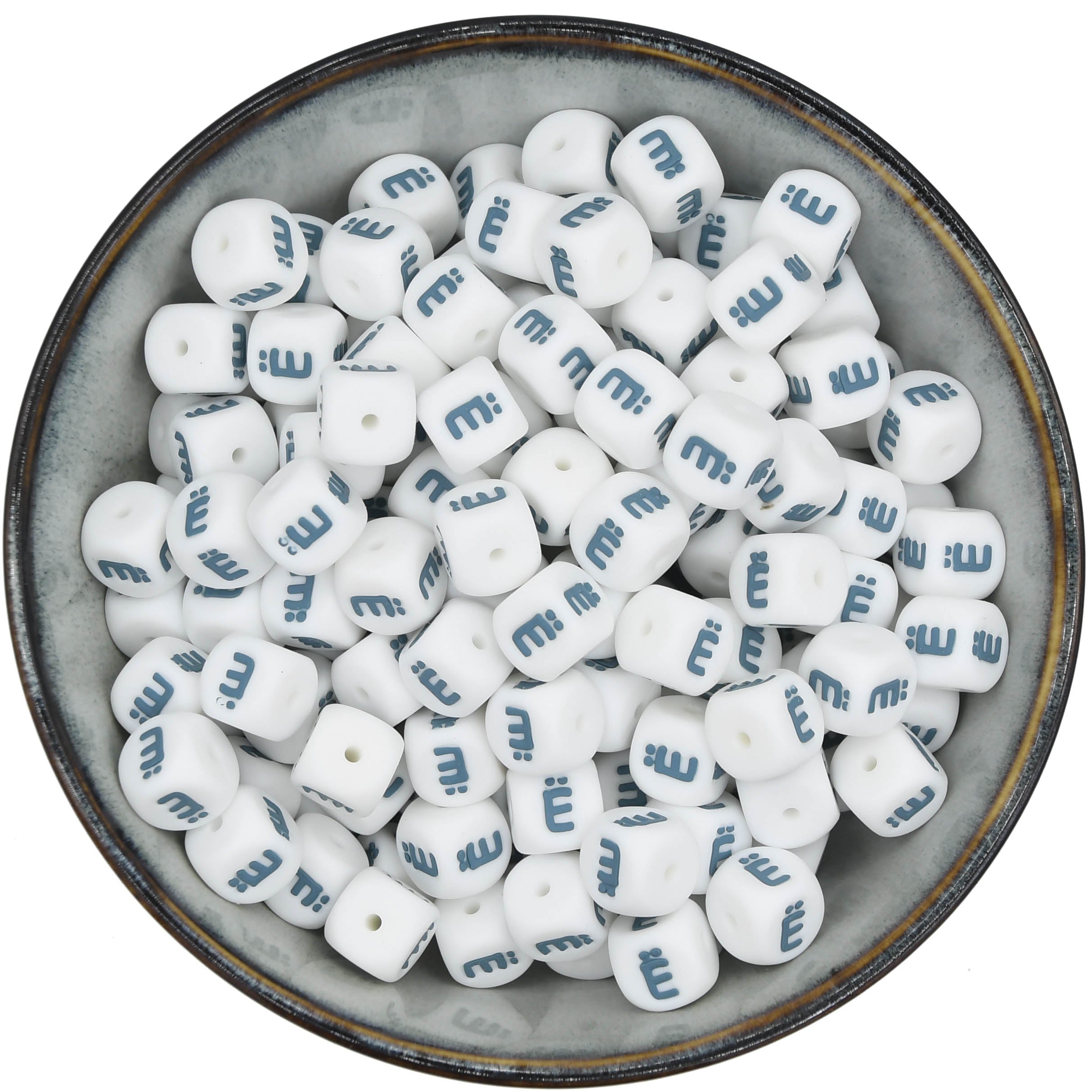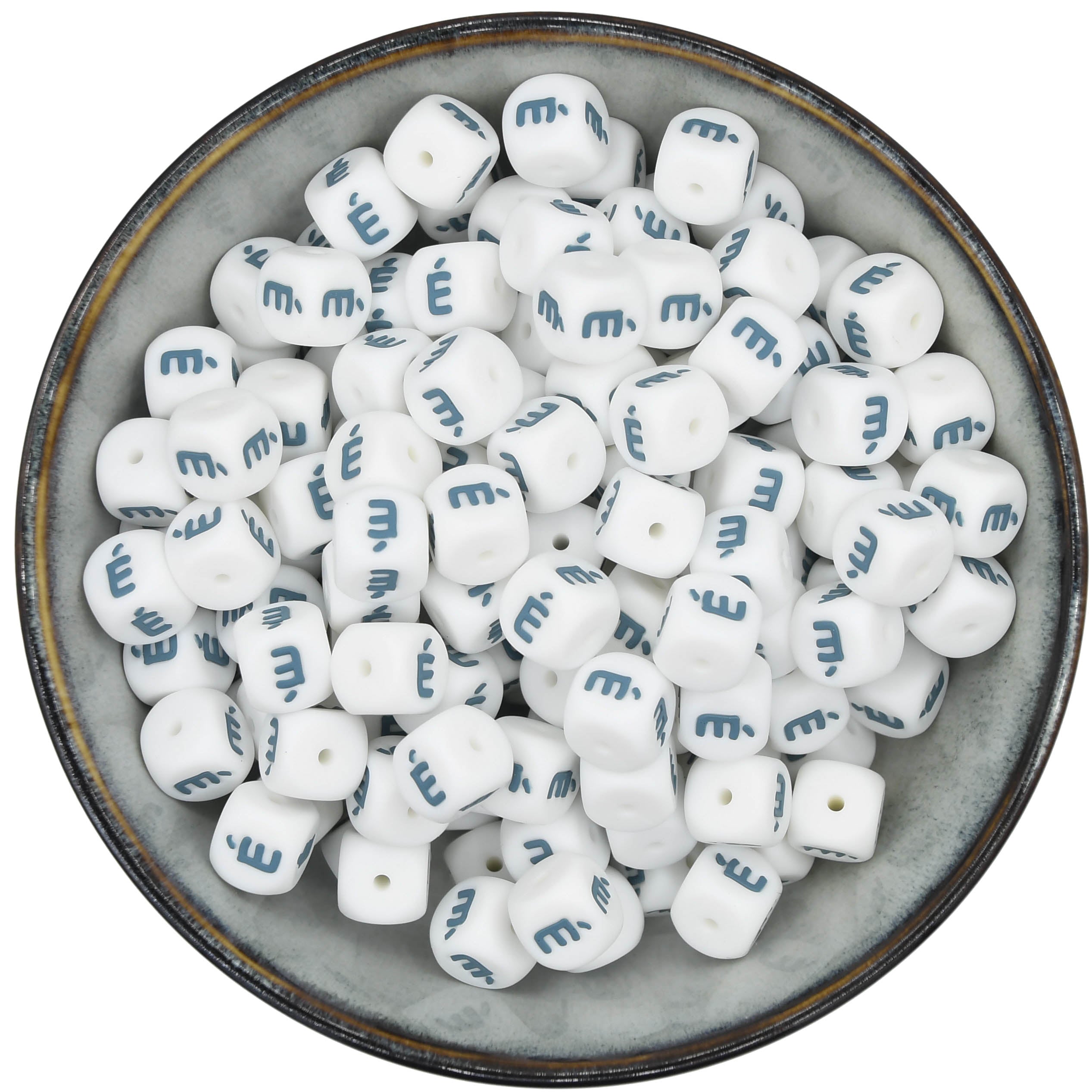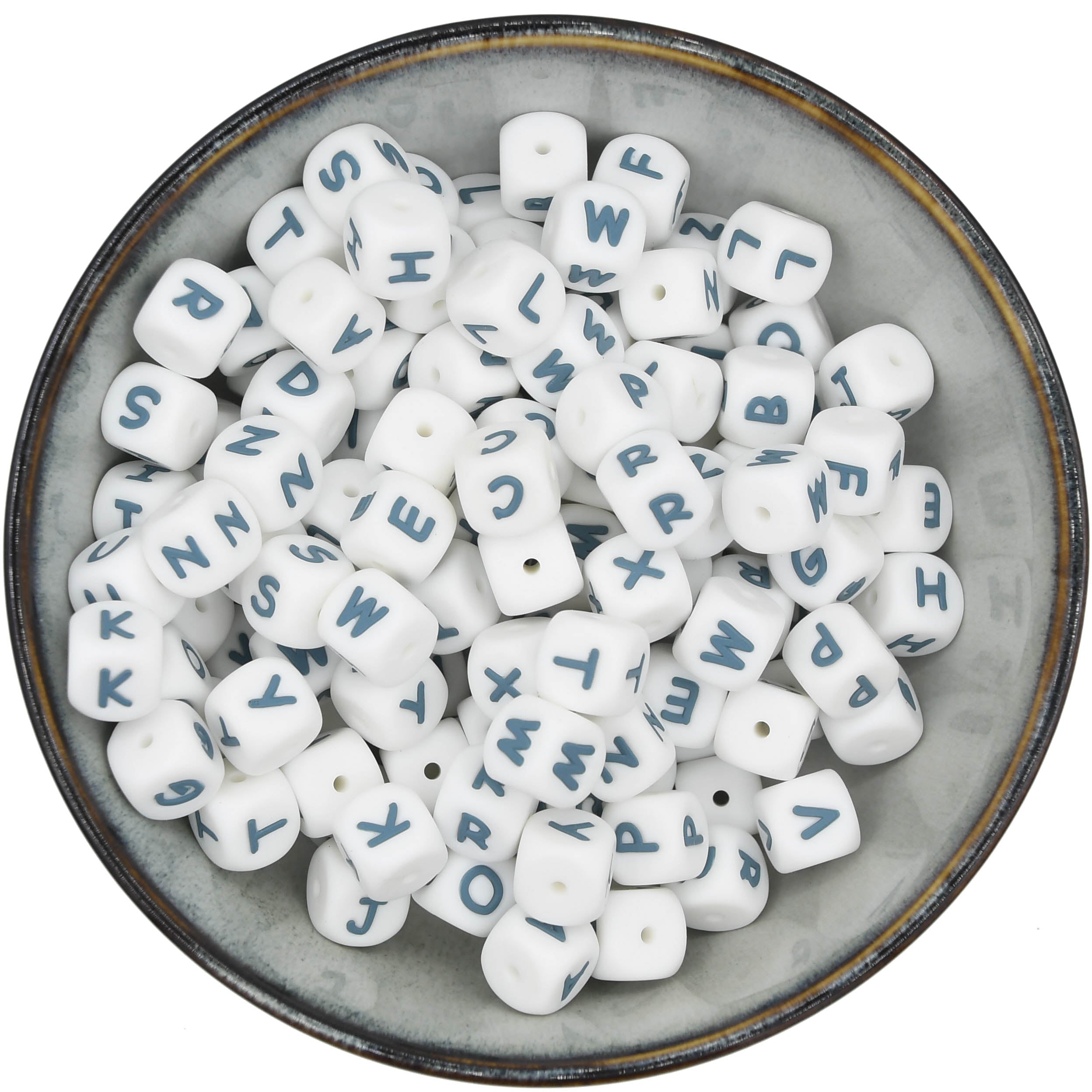 Cuentas letras 12 mm - Blanco/Azul ártico