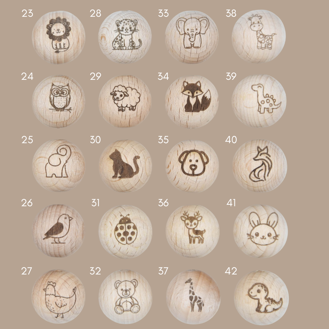 Perle en bois 18mm avec Animal (42 options)