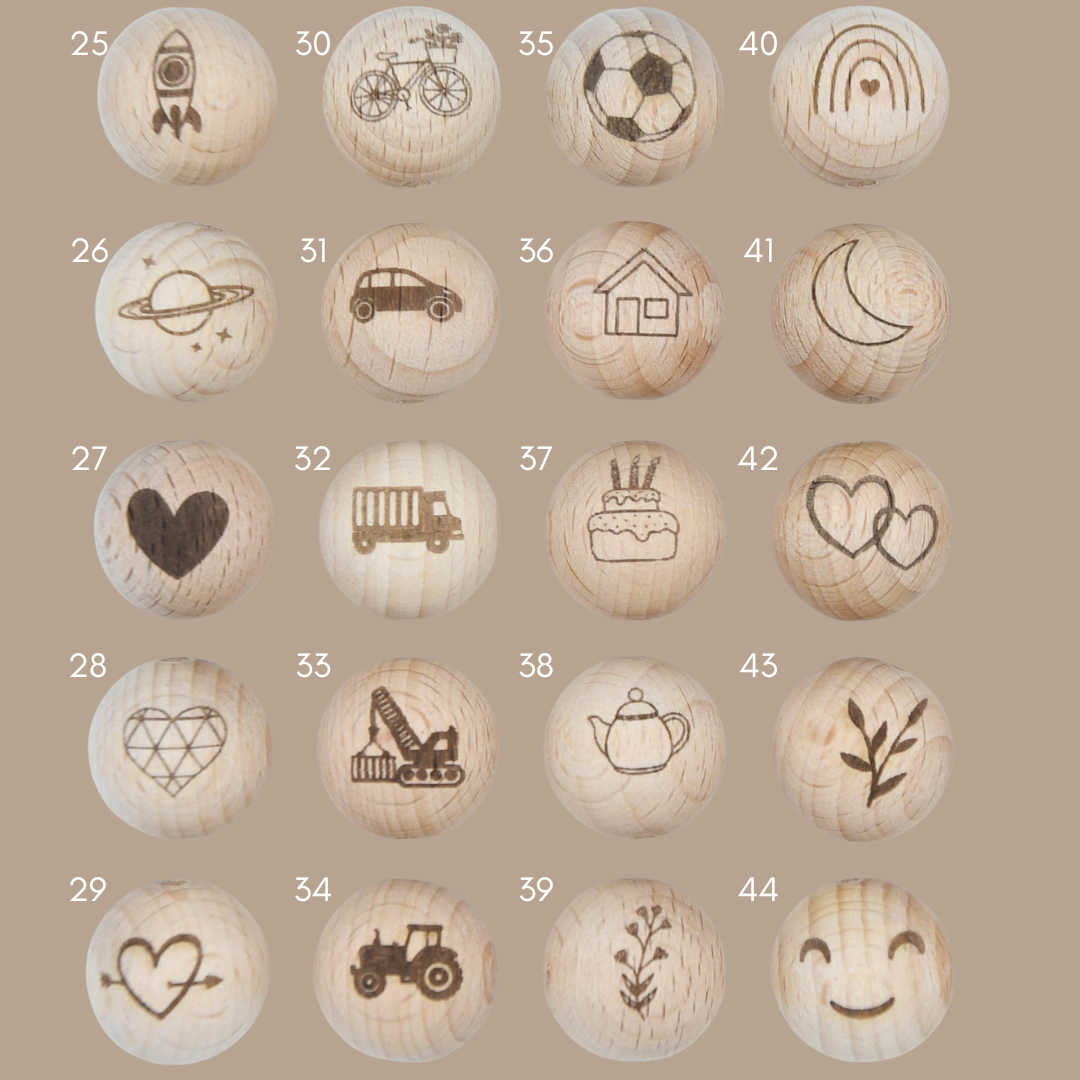 Perles laser faites maison super amusantes avec toutes sortes d’images différentes. Agréable à utiliser dans une attache-tétine, sur un porte-clés ou sur un stylo.