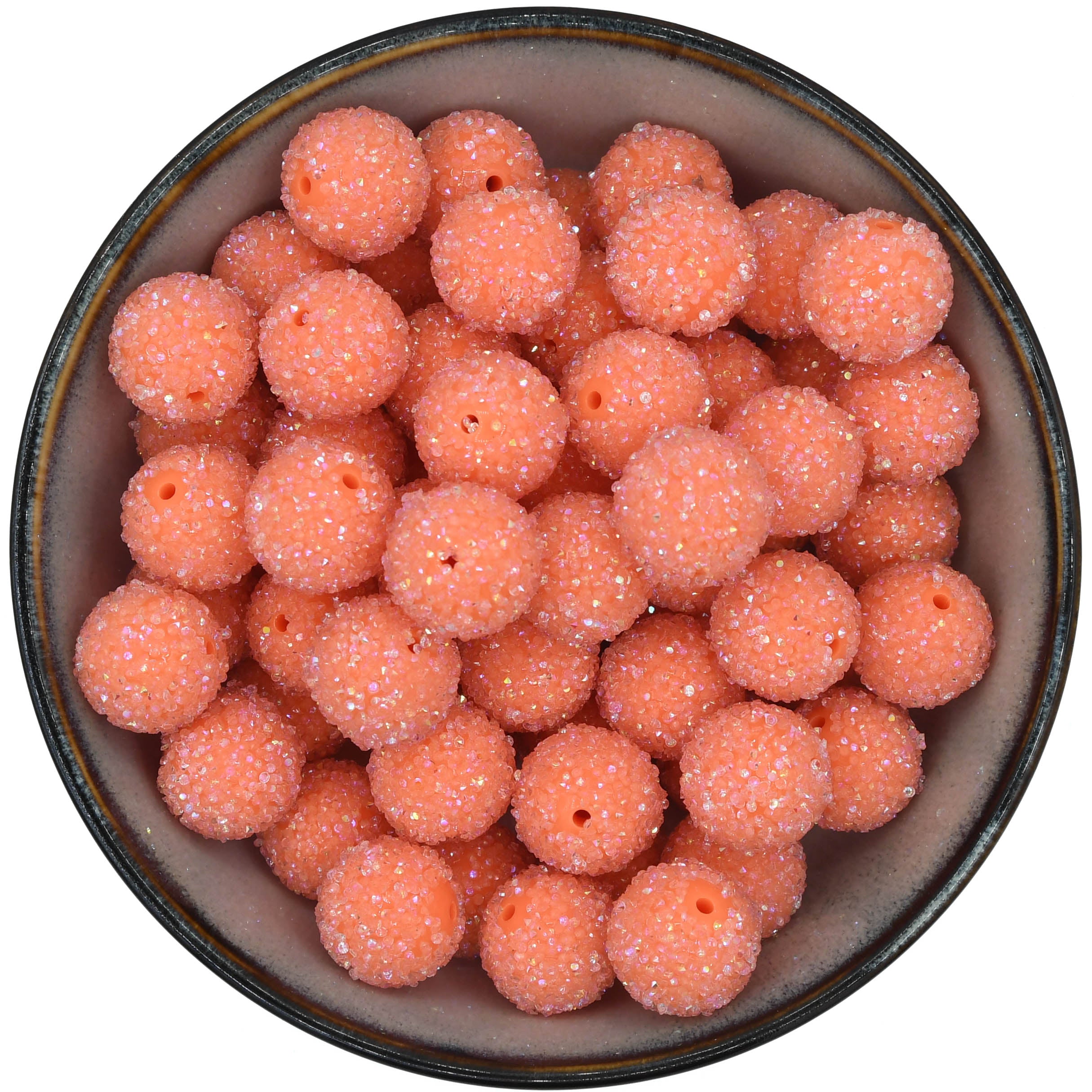 Acrylkraal met een soort 'suikerlaagje'. Heerlijk om als afwisseling op de siliconen kralen te gebruiken op bijvoorbeeld pennen. Let op: er kunnen wat 'glittertjes' loslaten van de kralen.