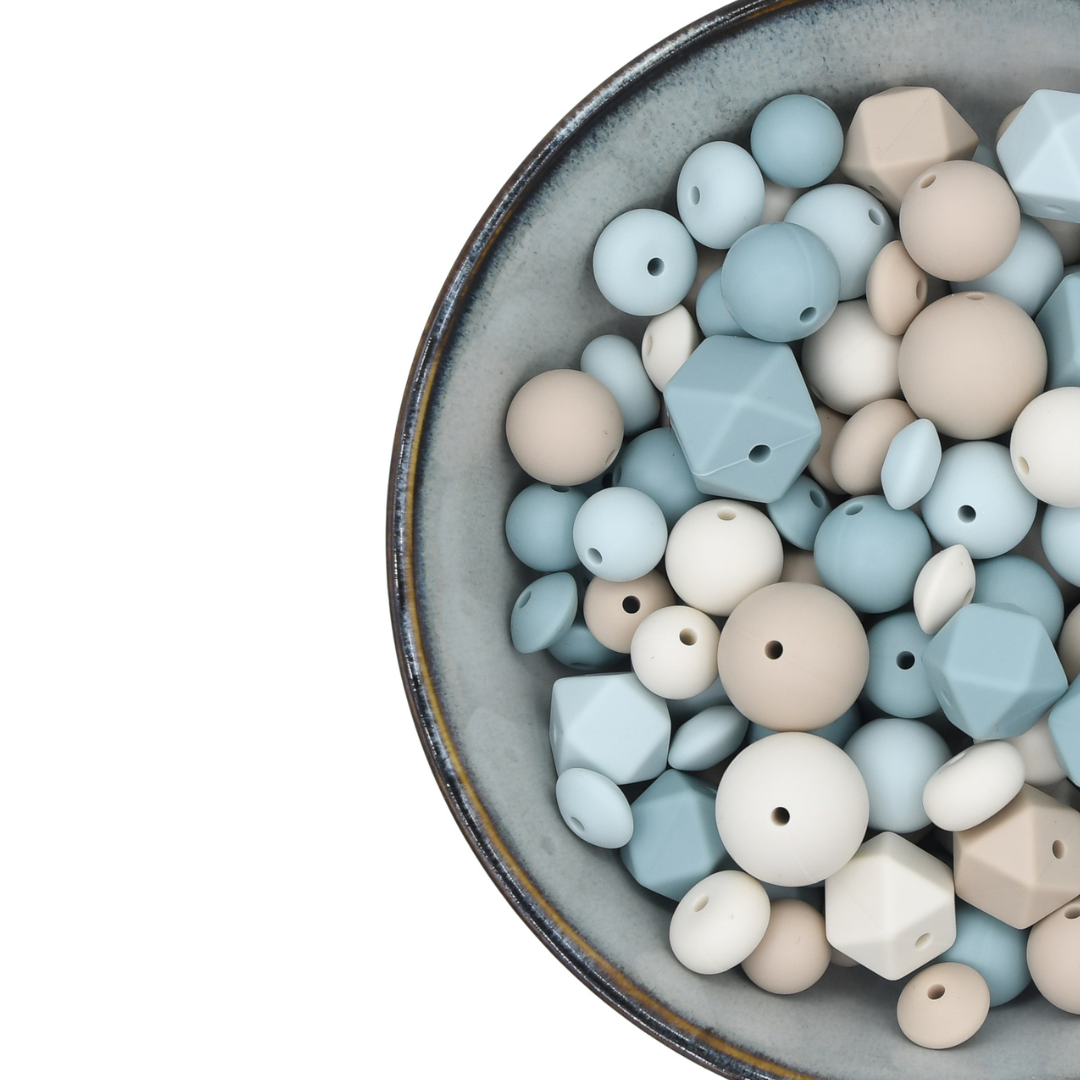 De kralen met de glossy laagjes kunnen slijten, en die raad ik dus niet aan voor bijtartikelen.