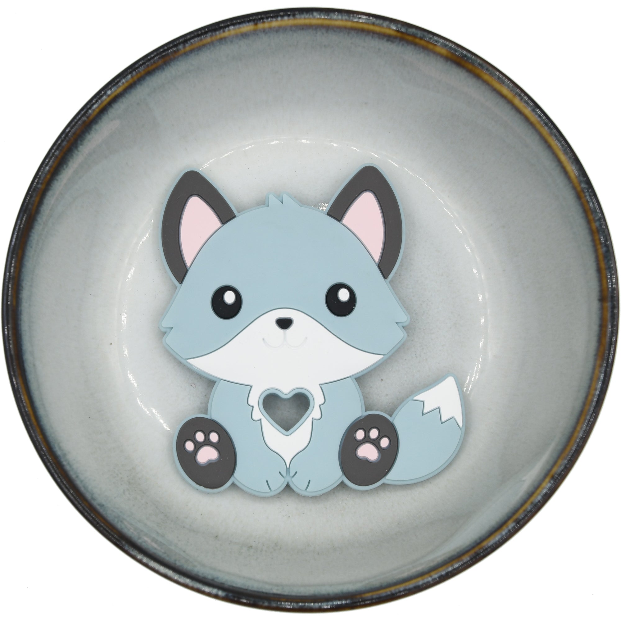 Siliconen bijtfiguur in de vorm van een Vos. Deze Vos heeft dezelfde vorm als de Vos 2-kralen. (Afmeting van deze bijtfiguur is ongeveer 8 bij 8 cm).