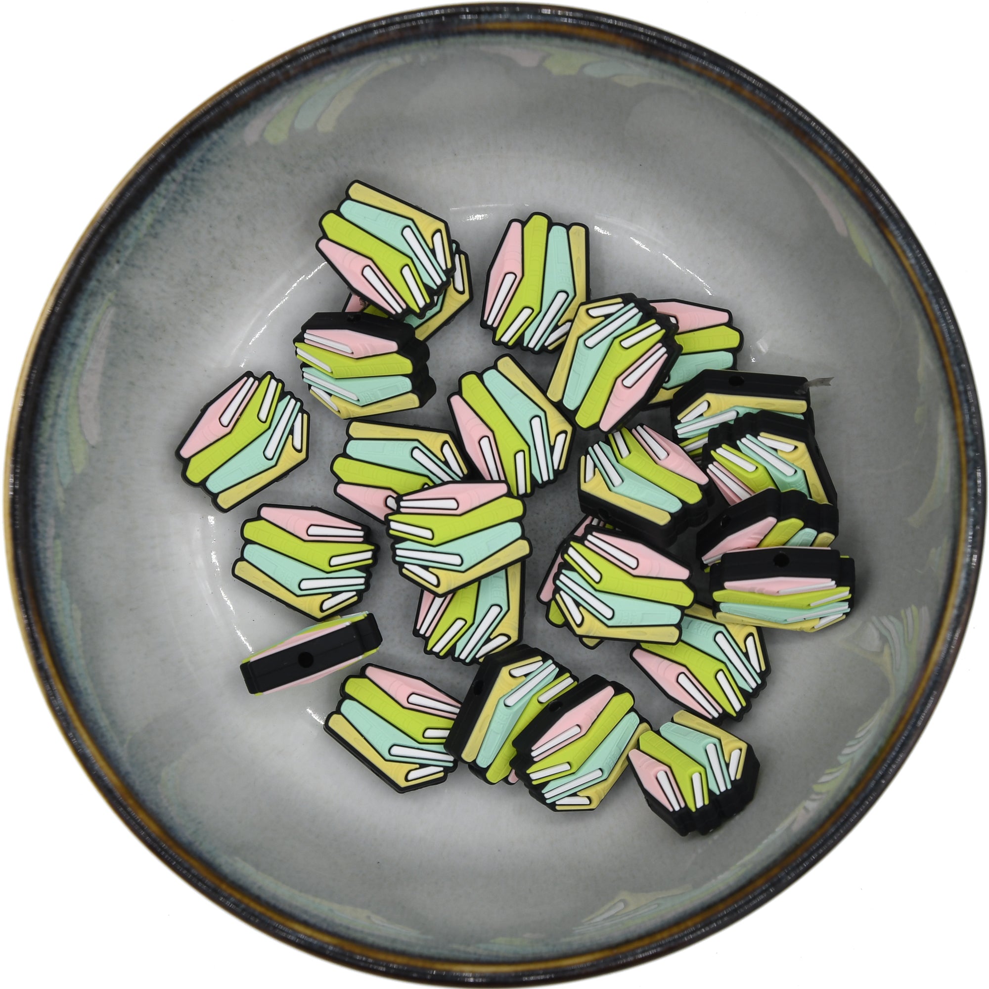 Voor de echte boekenwurm zijn deze kralen in 3 kleurstellingen te krijgen! Leuk aan een sleutelhanger of pen.
