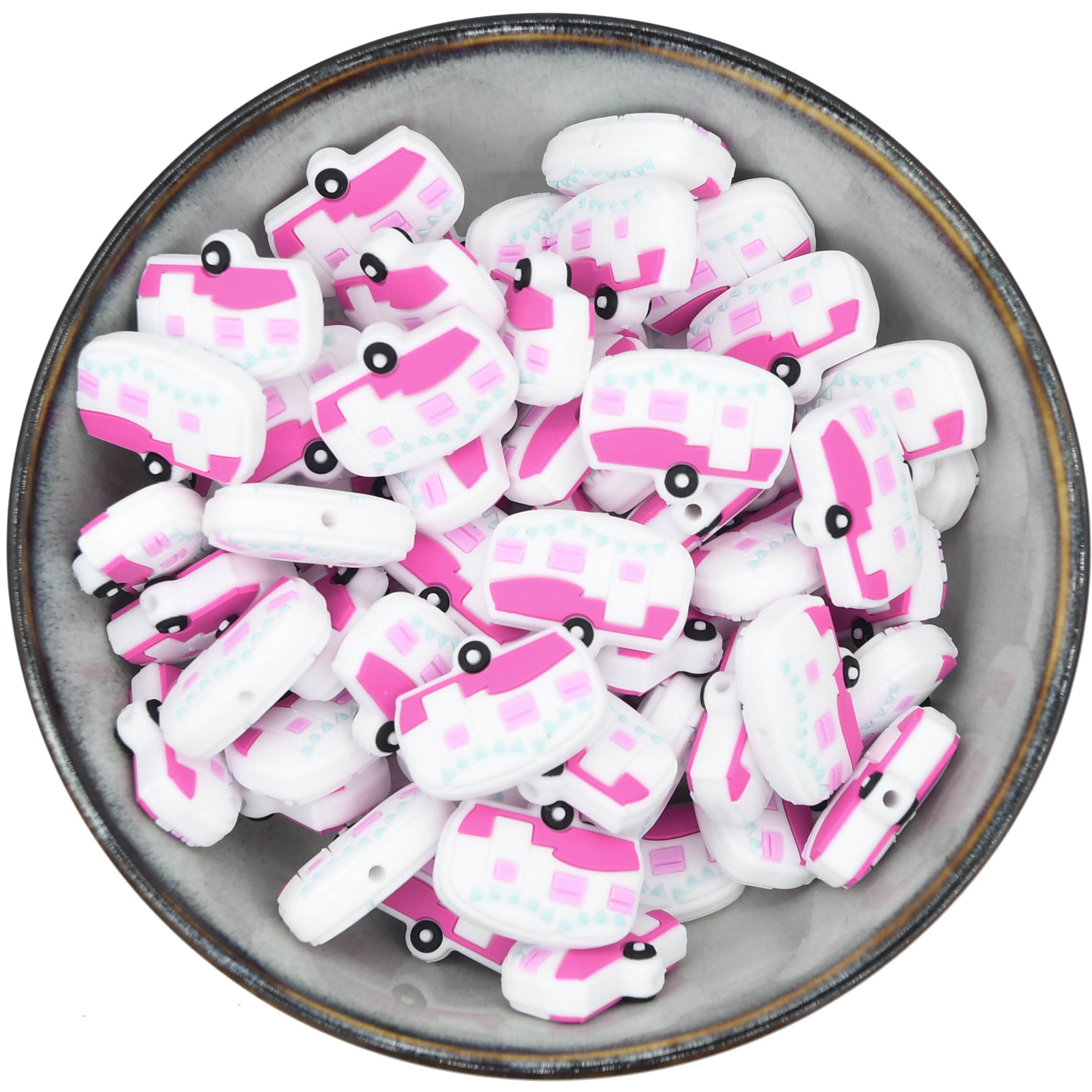 Voor de vakantiegangers! Een siliconen figuurkraal in de vorm van een caravan met vlaggetjes.