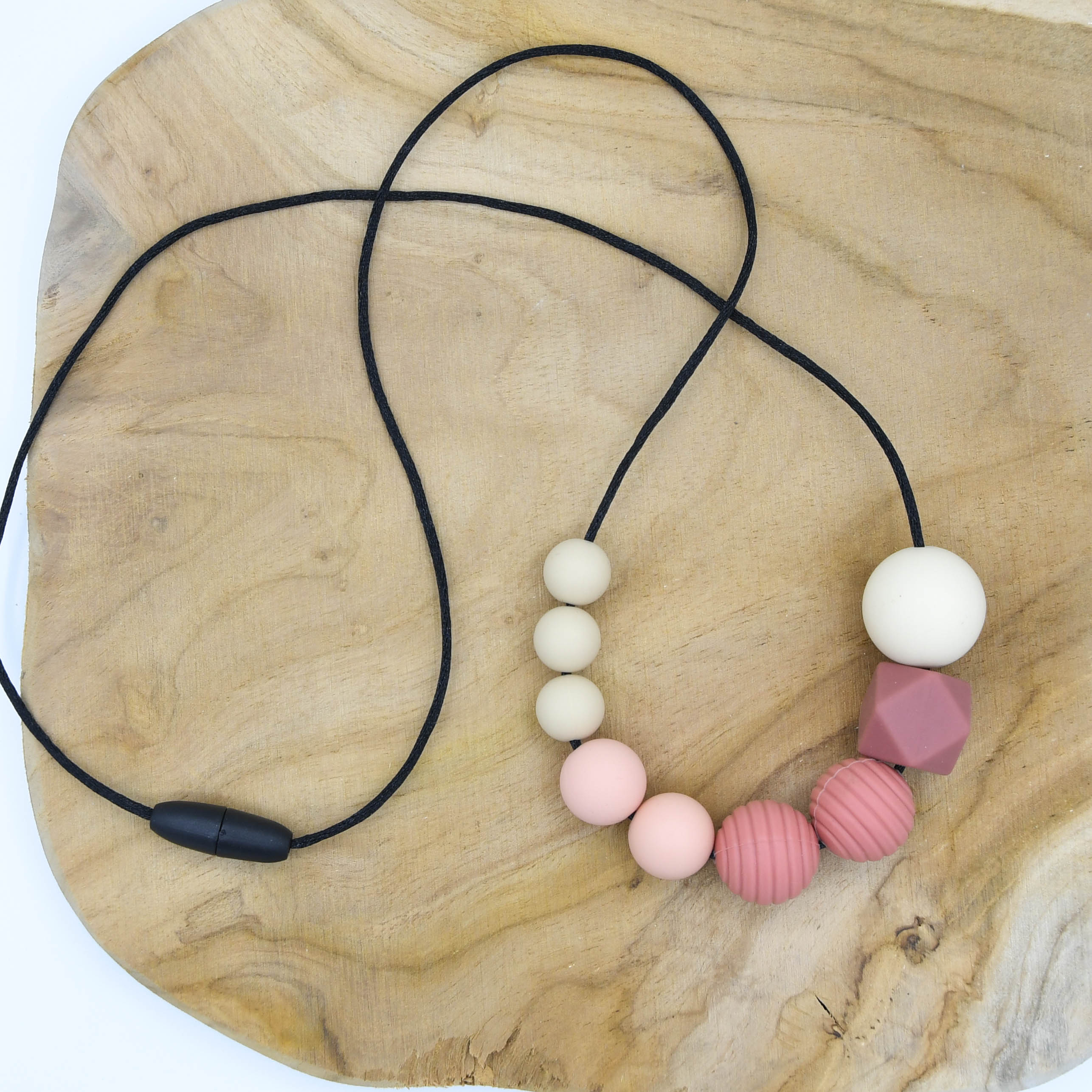 Een mama-ketting of voedingsketting is superhandig als je een kindje hebt dat tijdens het voeden (of dragen in een drager of draagdoek) graag aan je haar trekt, of in je gezicht knijpt, maar het is natuurlijk ook gewoon een mooi accessoire!