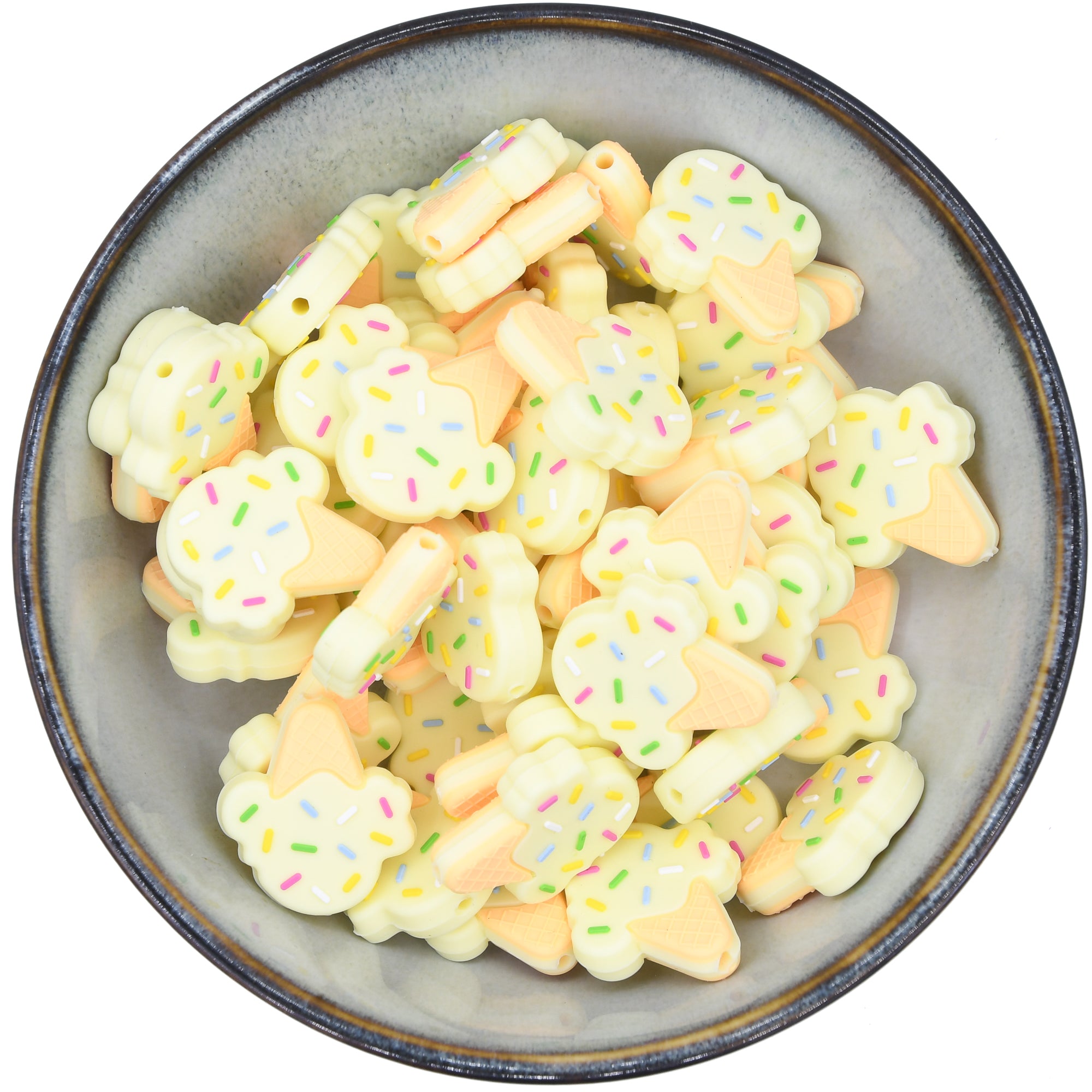 Siliconen kraal in de vorm van een ijsje. Bijvoorbeeld heel erg leuk aan een sleutelhanger of tashanger of op een pen.