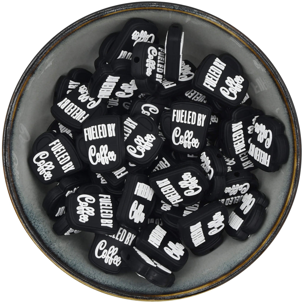 Zwarte koffiemok met de tekst 'Fuelled by Coffee'. Voor de echte koffieverslaafden onder ons.