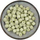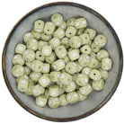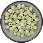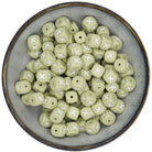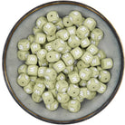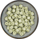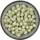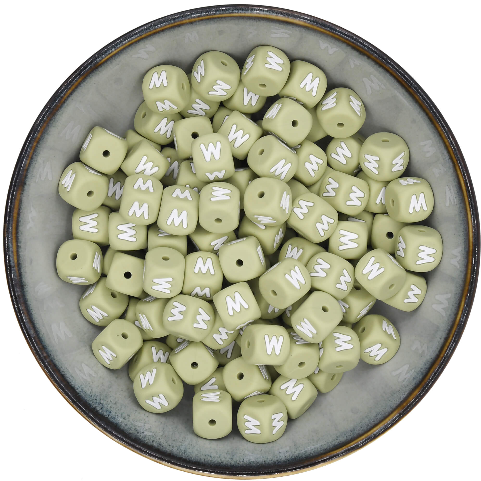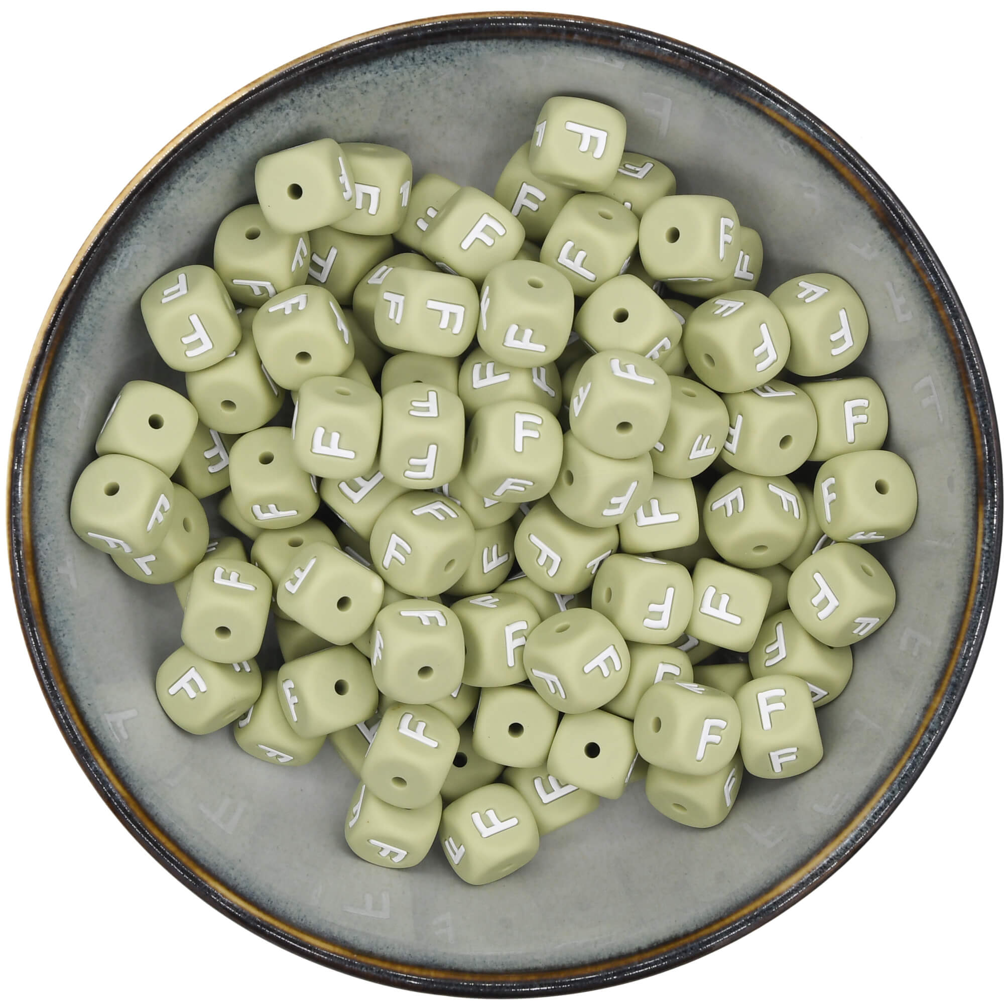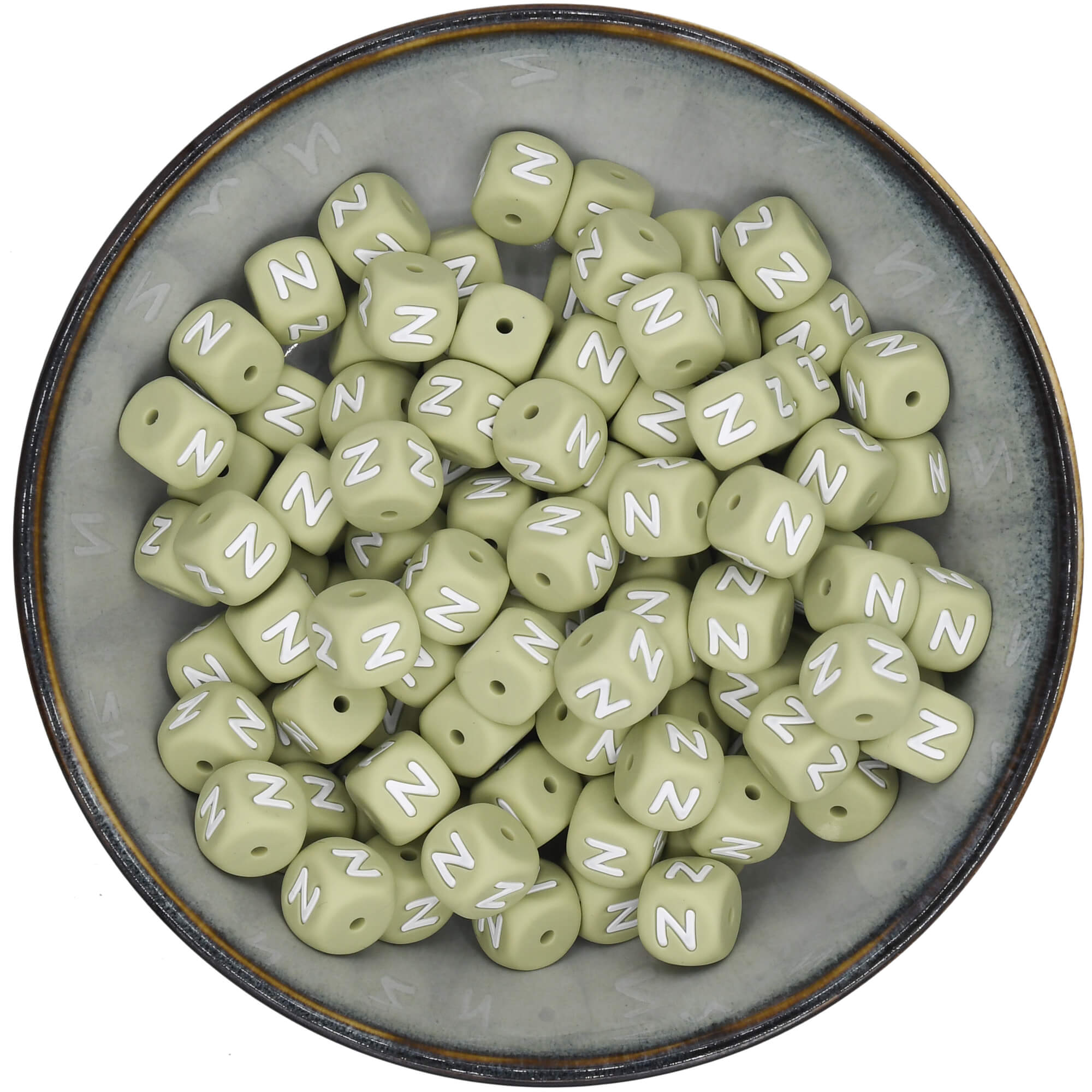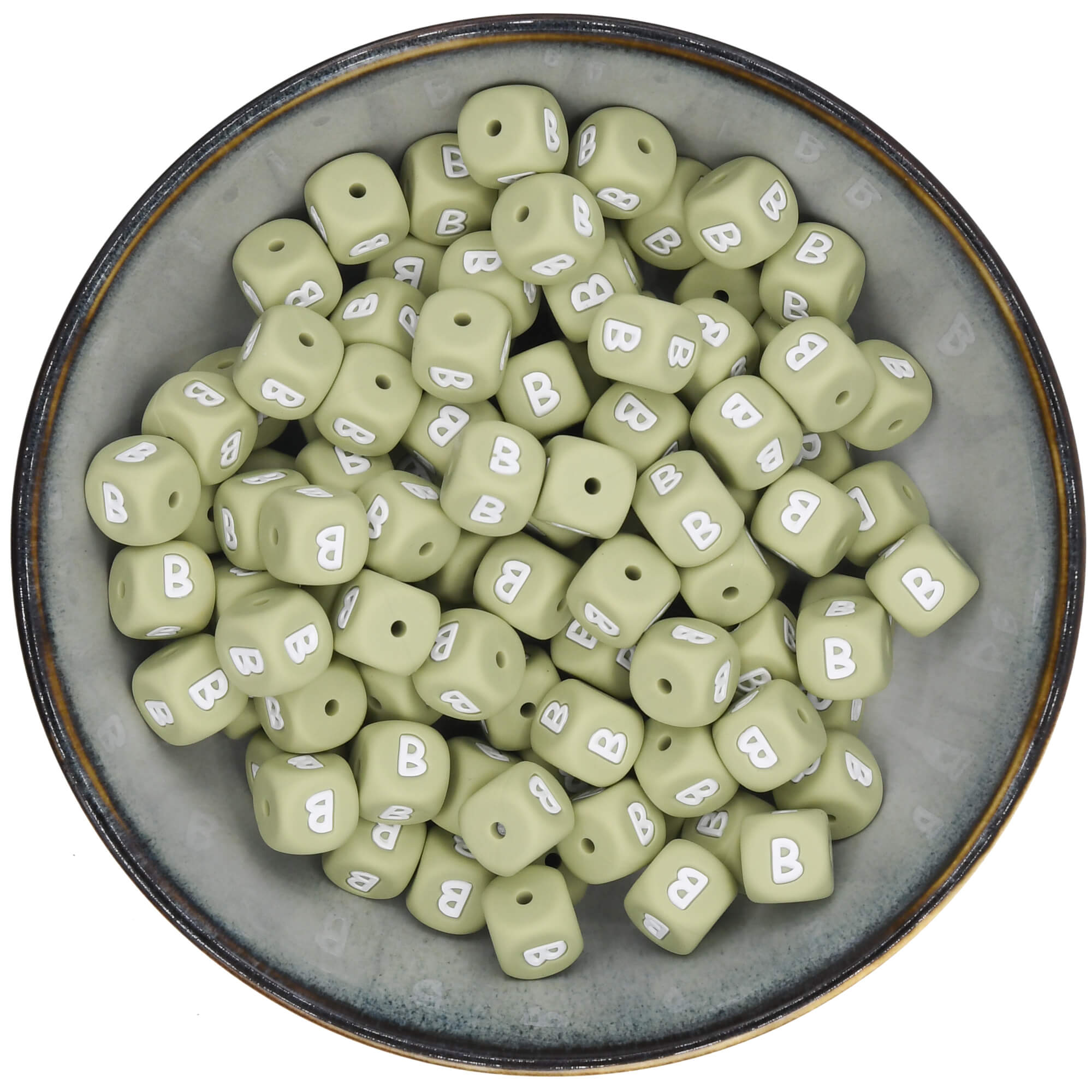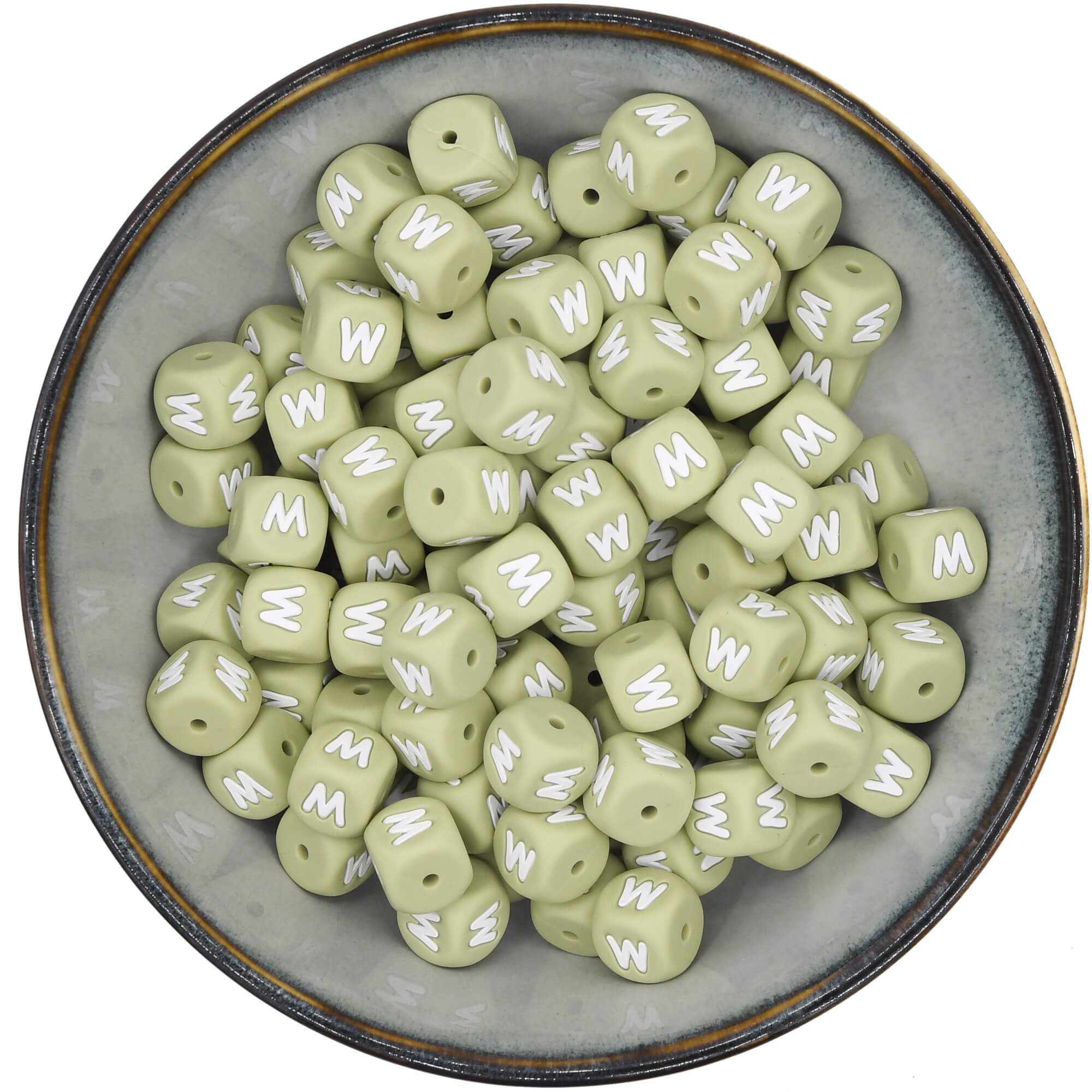 Letterkralen van 12 mm in een vergrijsd groene kleur die sterk lijkt op mijn andere vergrijsd groene kralen.