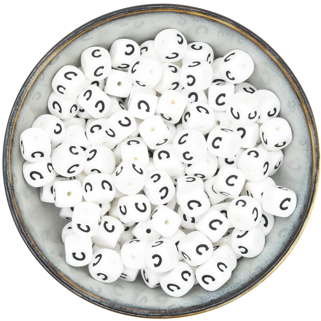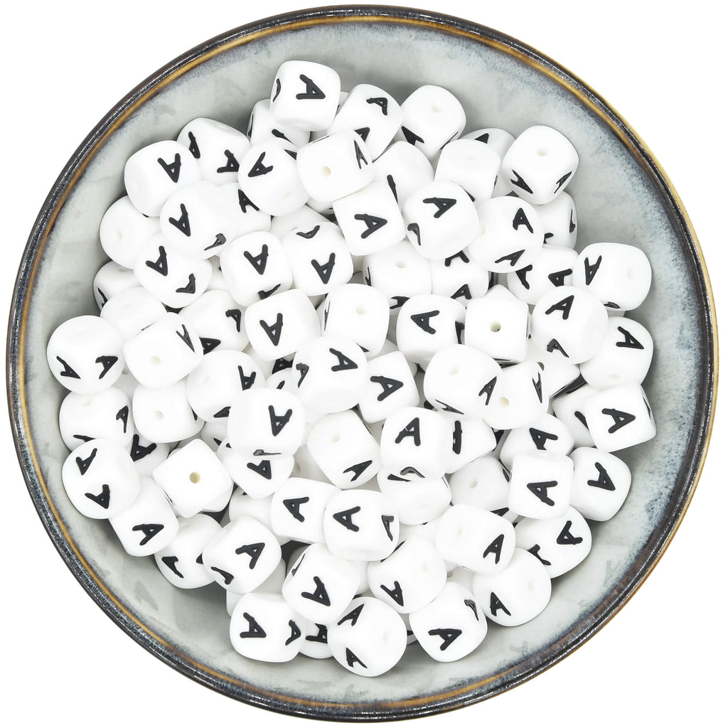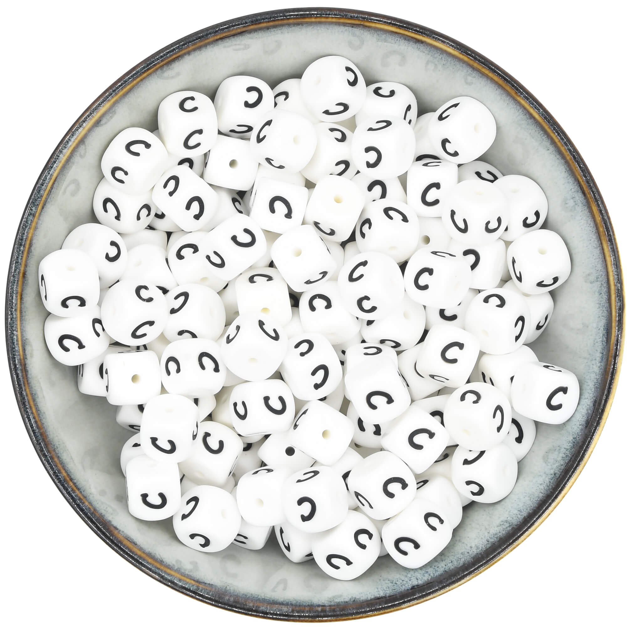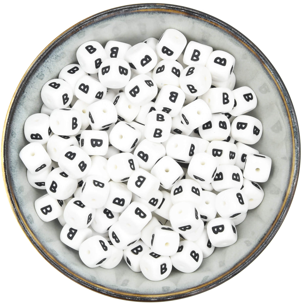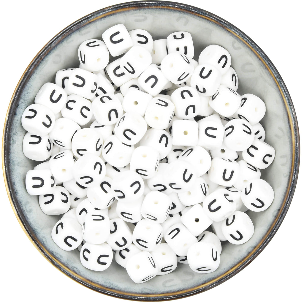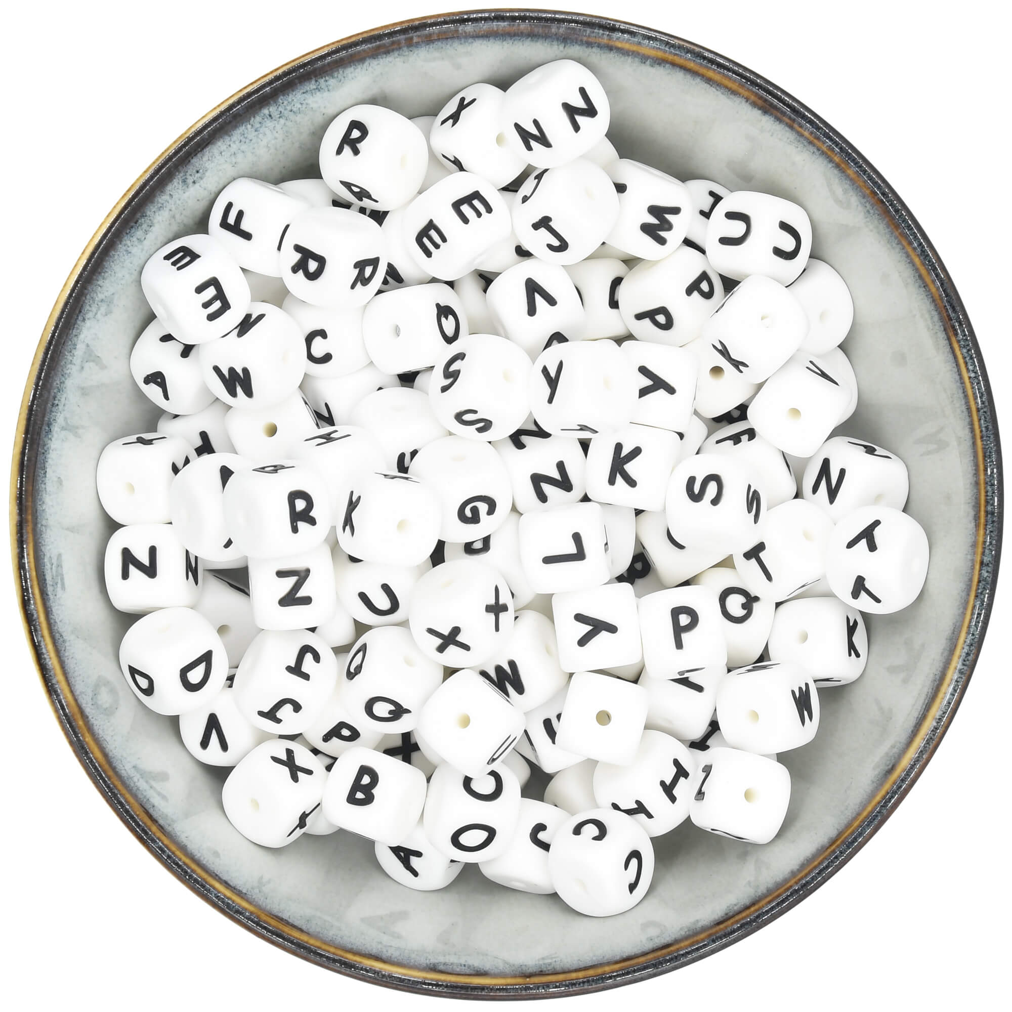 Deze letterkralen zijn de meest gebruikte siliconen letterkralen, omdat ze met alle kleuren gecombineerd kunnen worden.