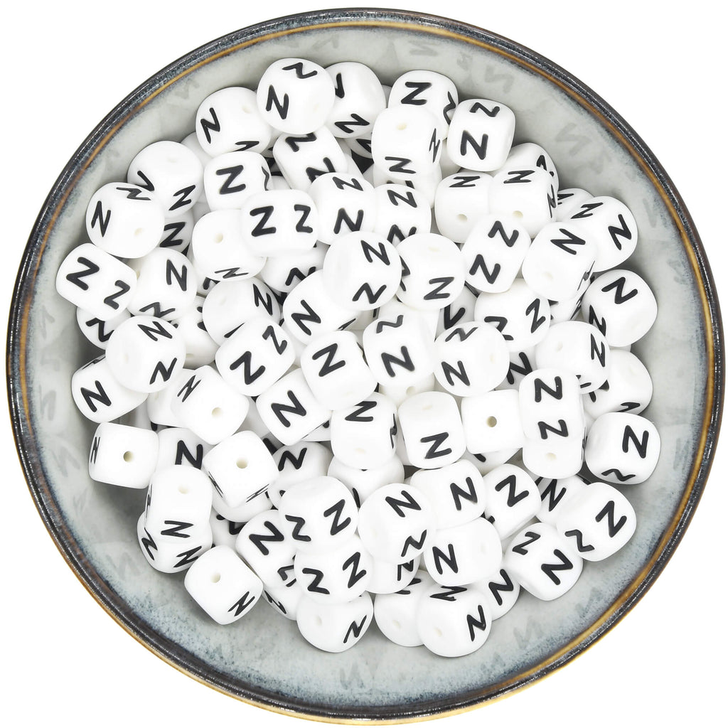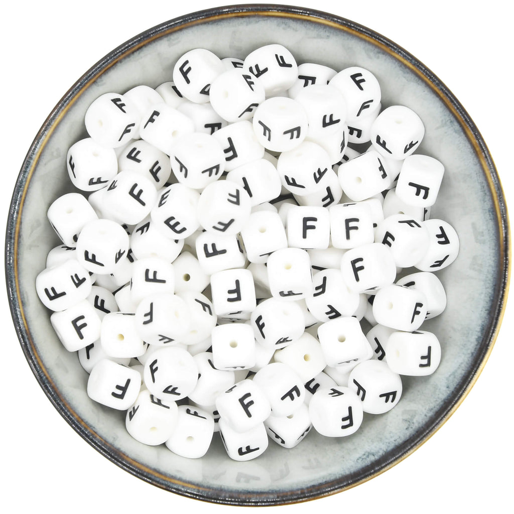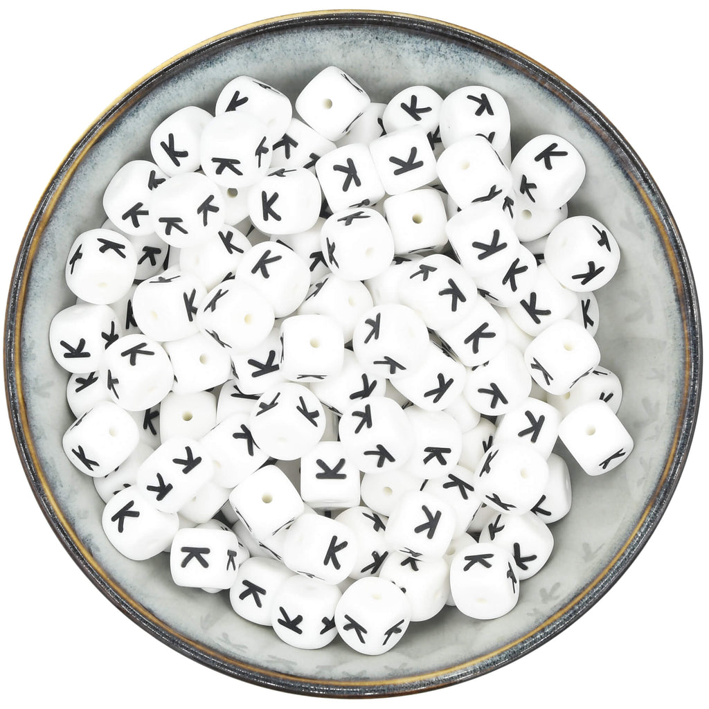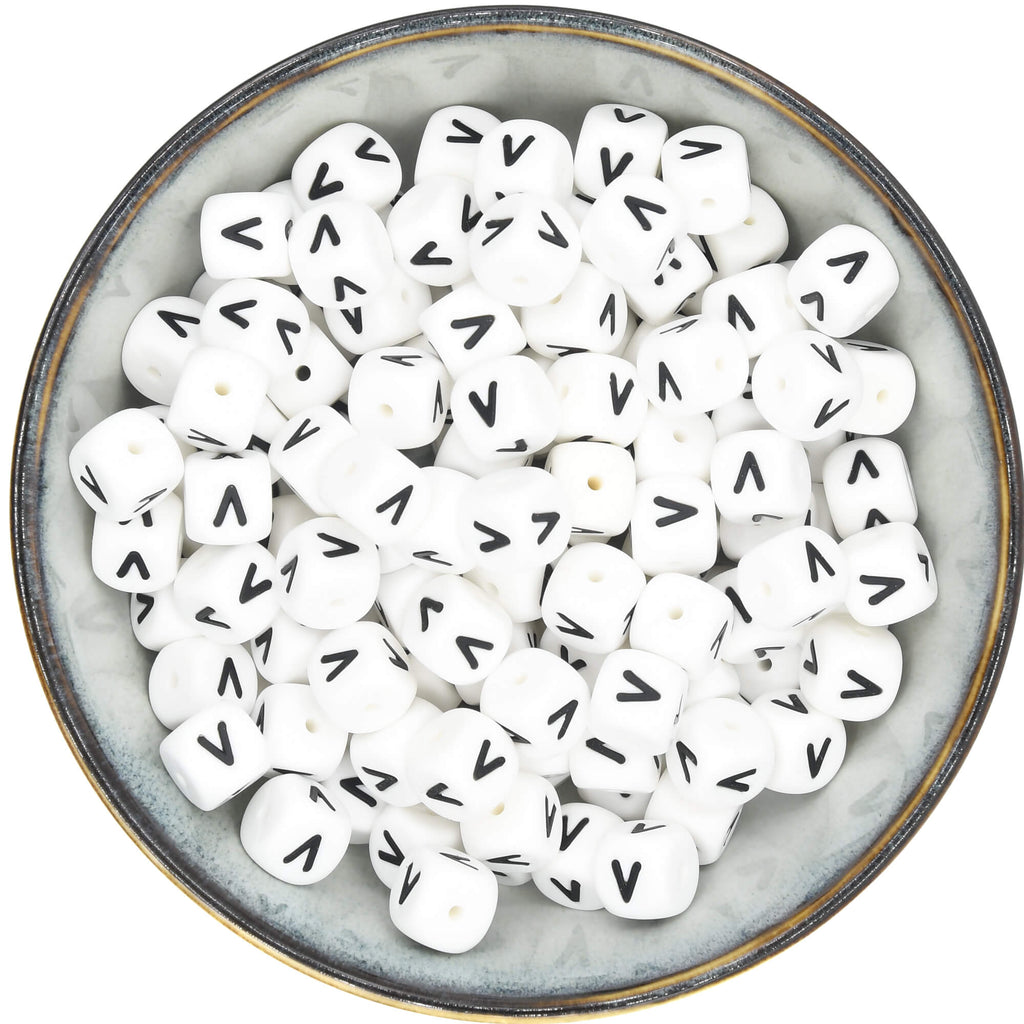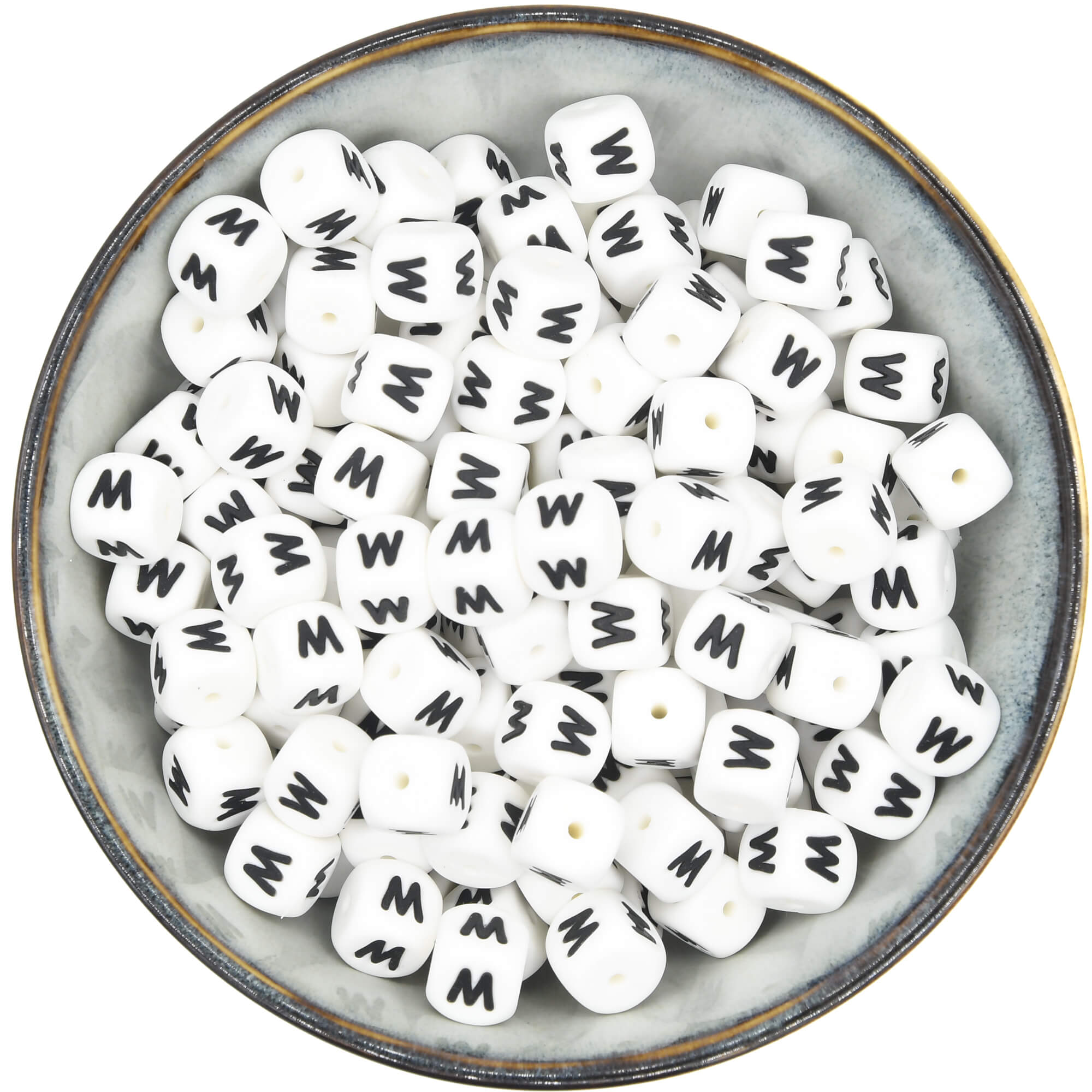 Deze letterkralen zijn de meest gebruikte siliconen letterkralen, omdat ze met alle kleuren gecombineerd kunnen worden.