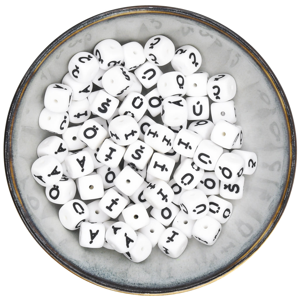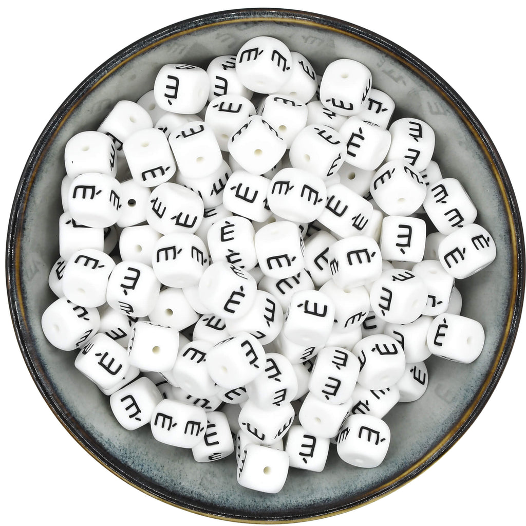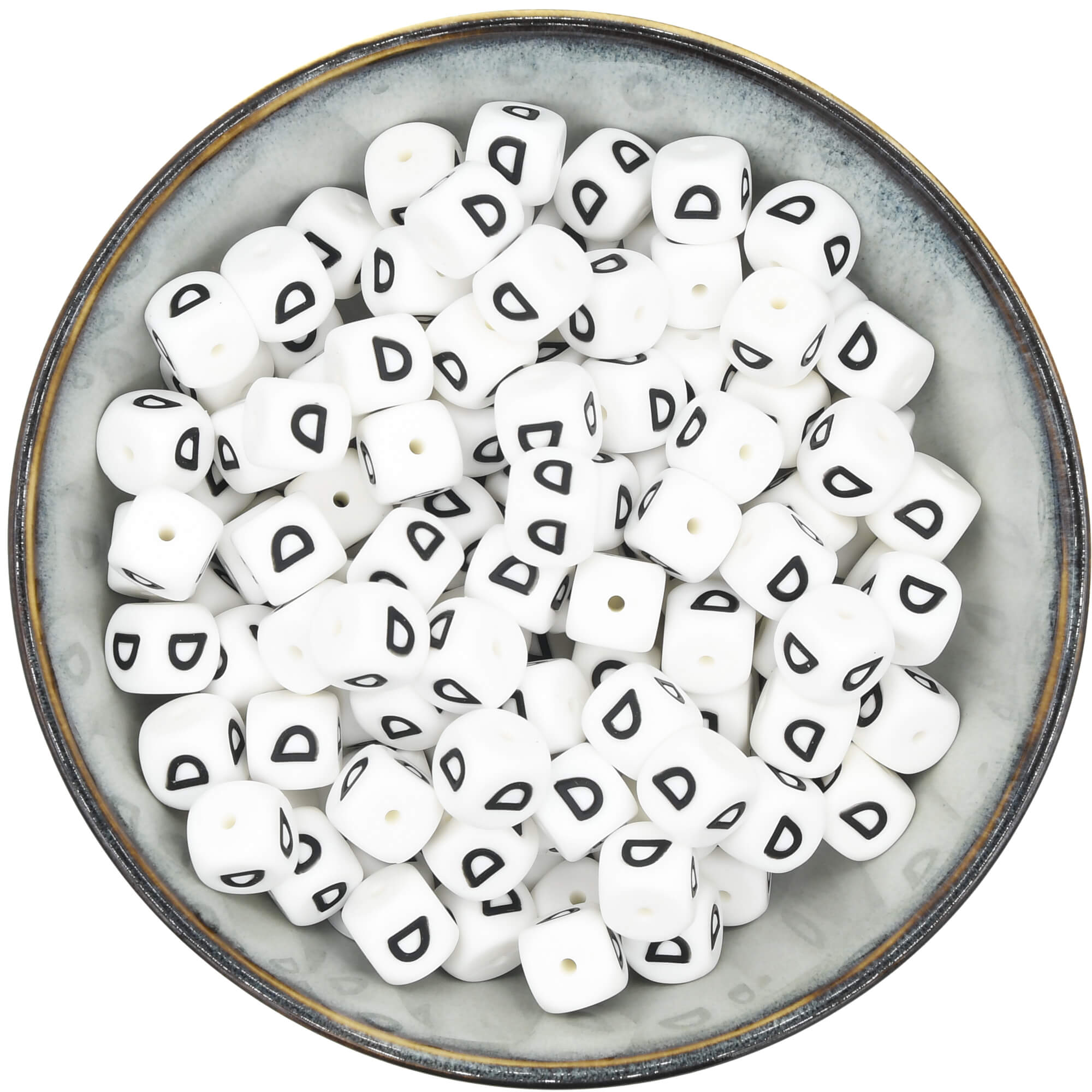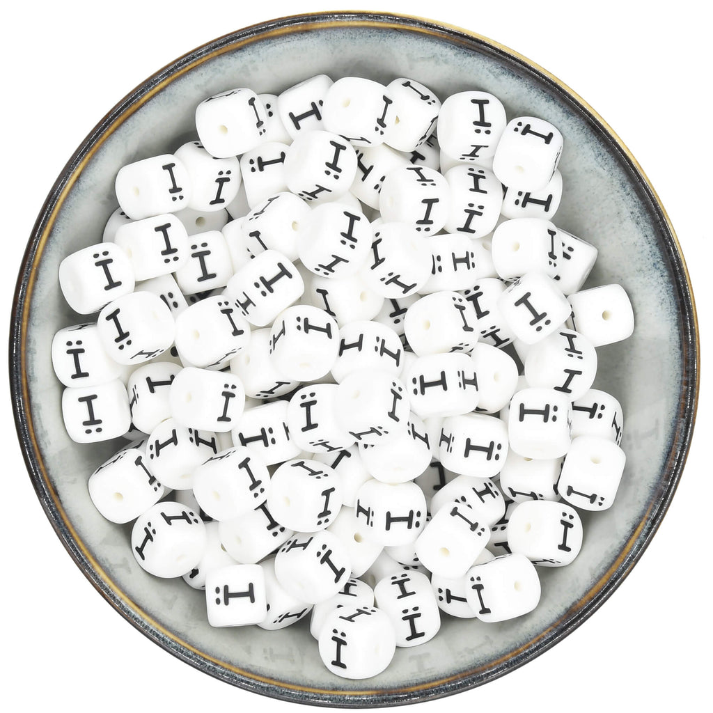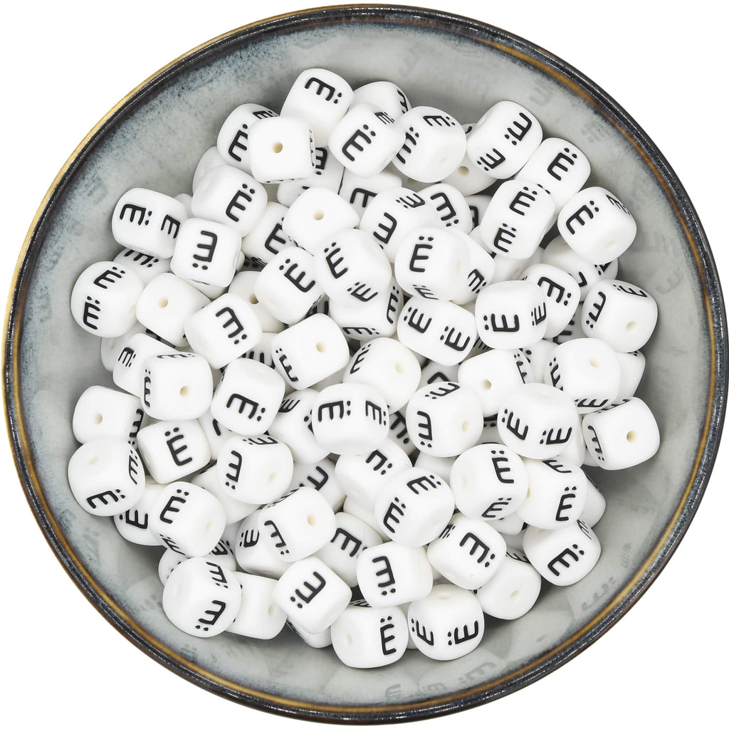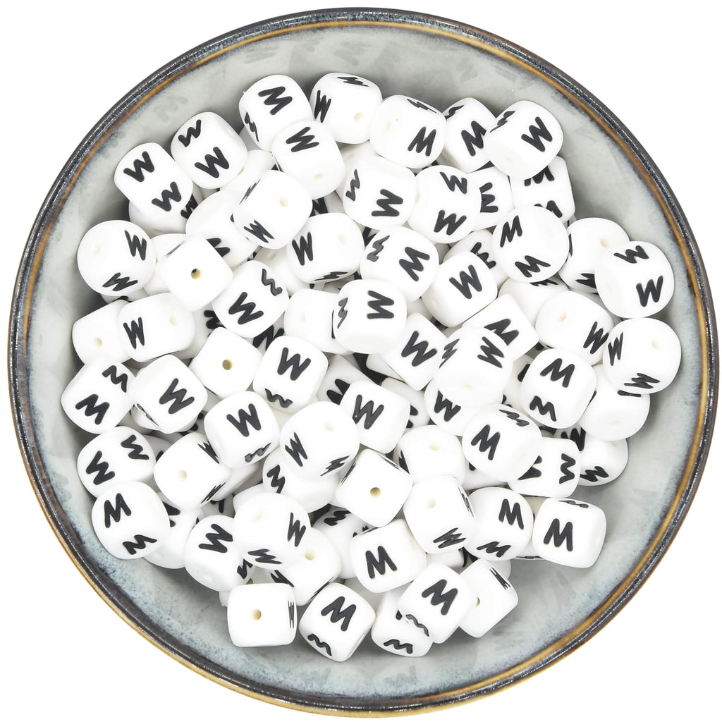 Deze letterkralen zijn de meest gebruikte siliconen letterkralen, omdat ze met alle kleuren gecombineerd kunnen worden.