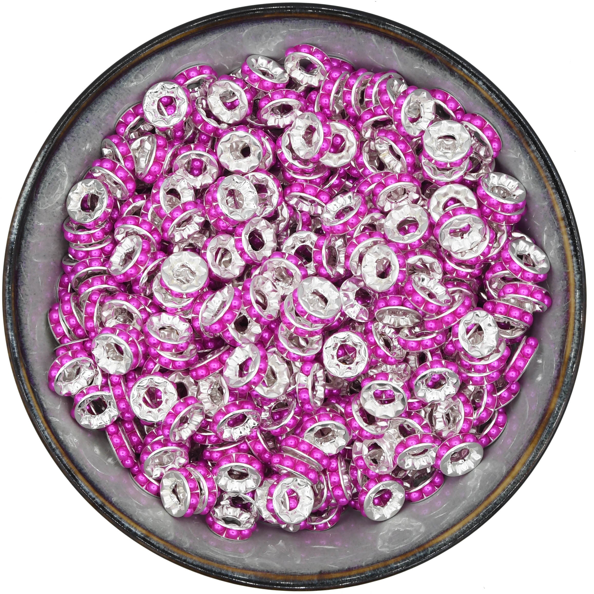 Voeg wat extra 'bling' toe aan je creaties met deze leuke kunststof tussenschijfjes met pareltjes.