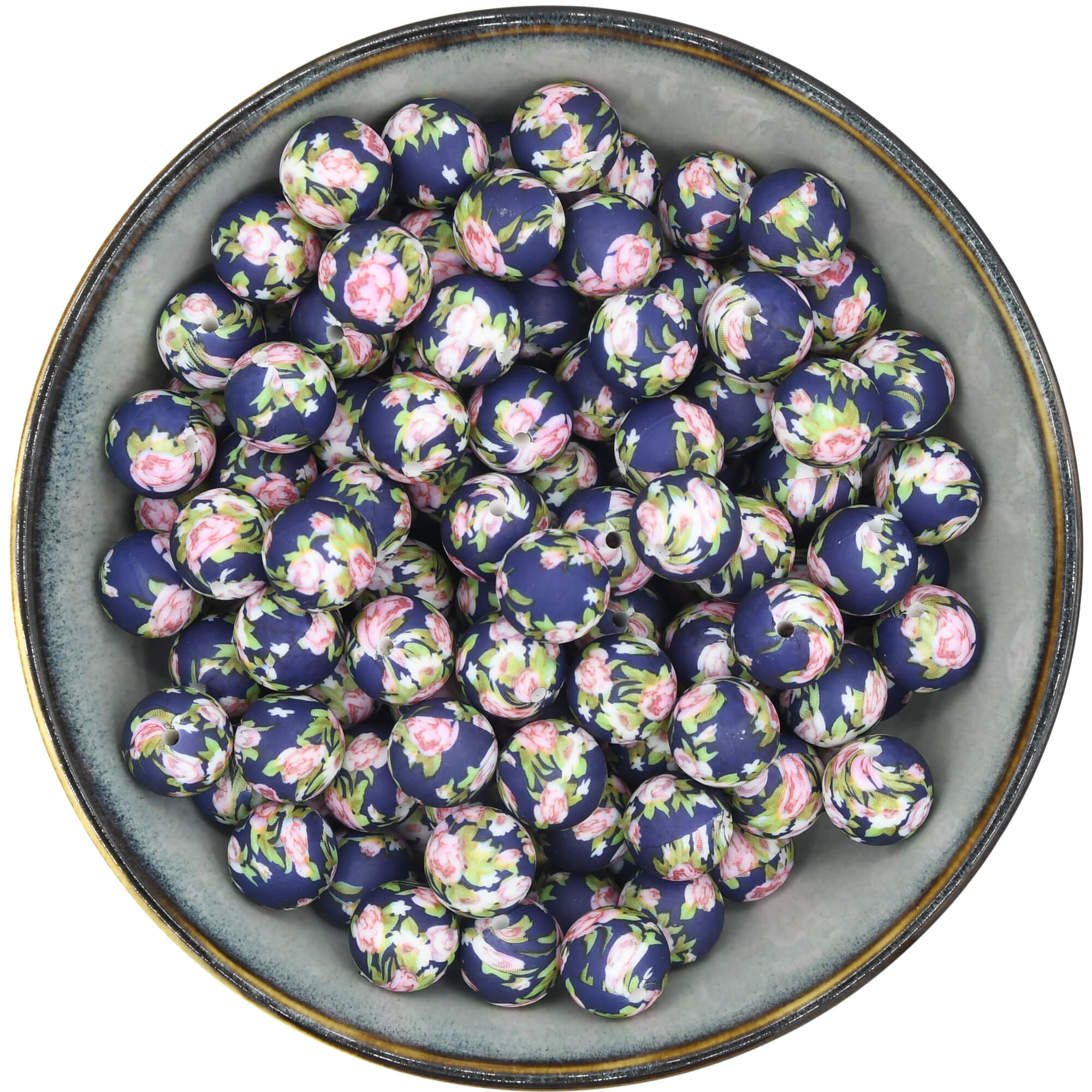 Prachtige rozenprint op een donkerblauwe achtergrond. Op dit moment alleen verkrijgbaar in 15mm.