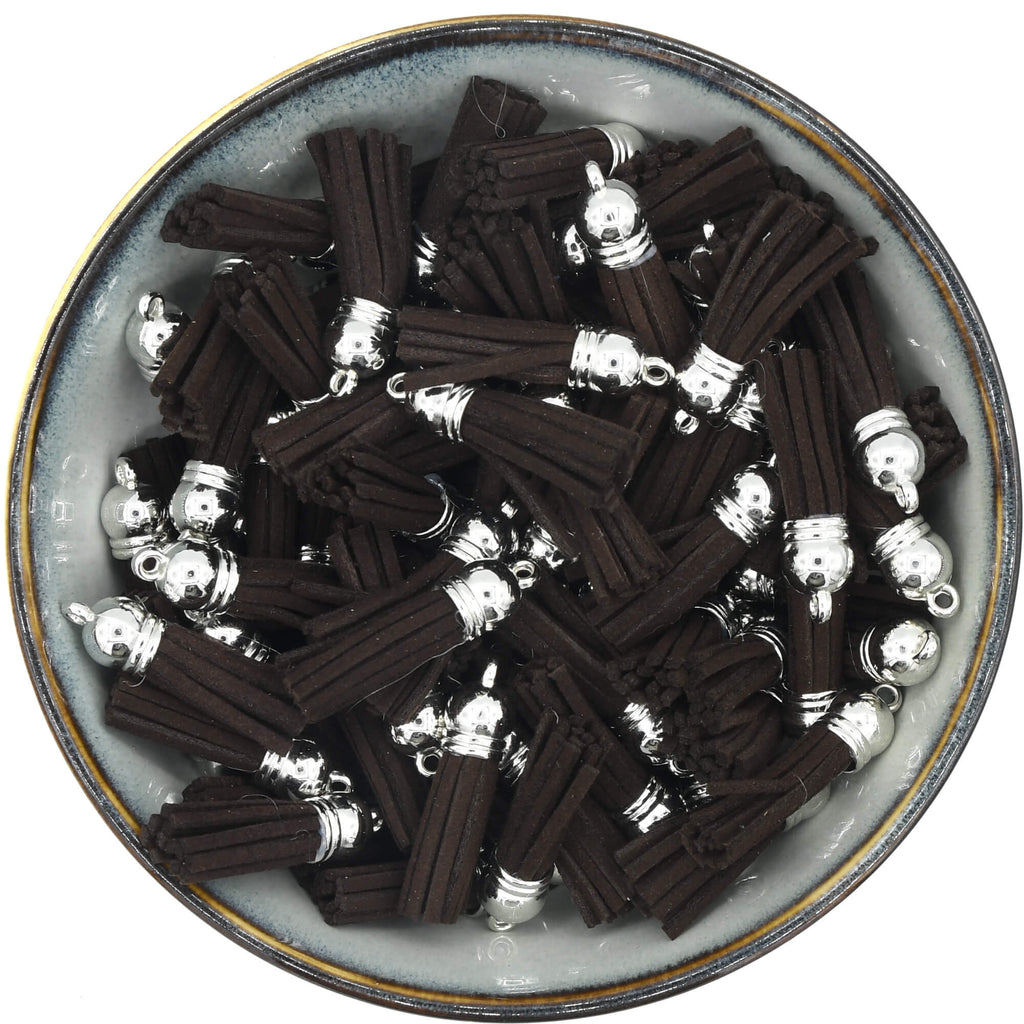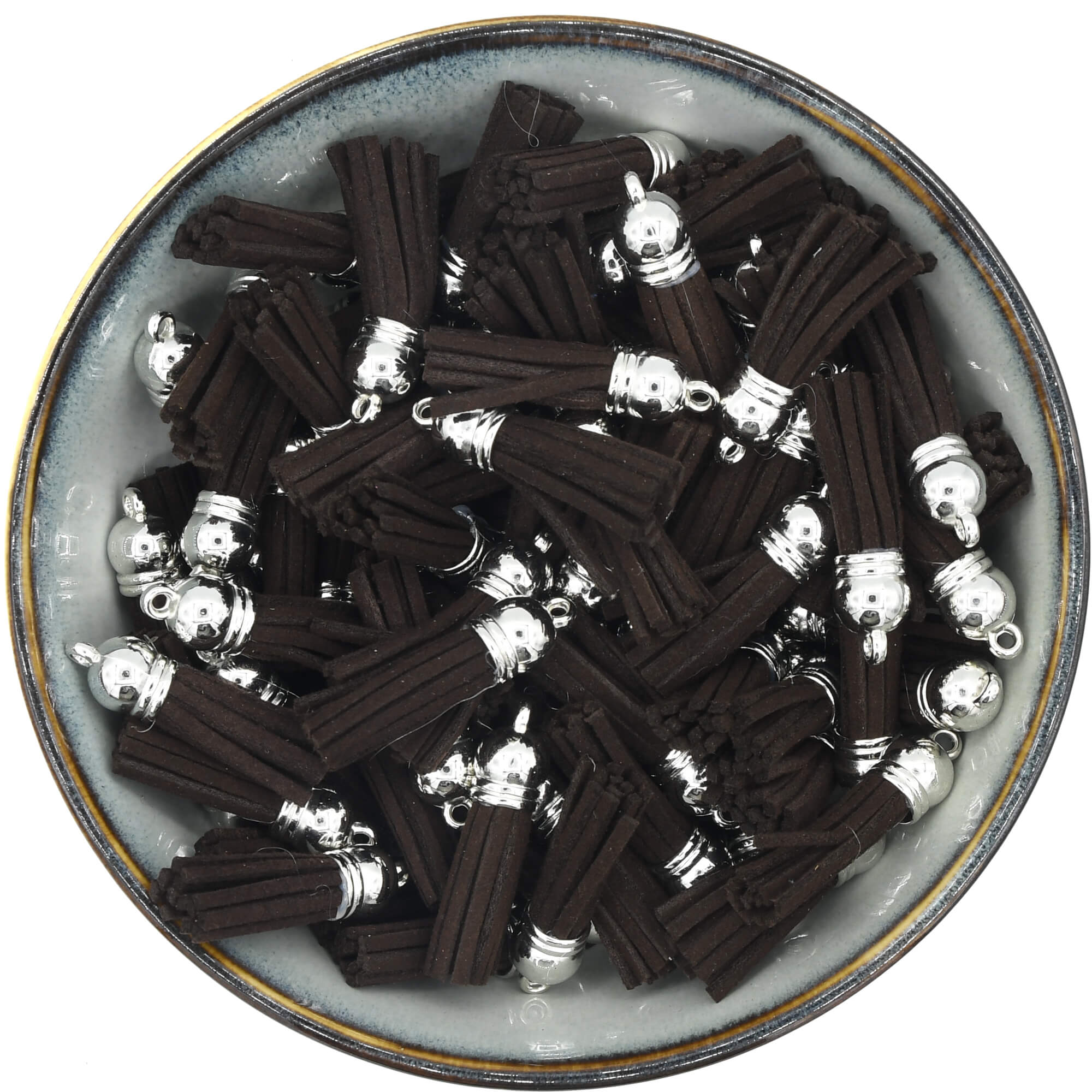 Leuke suède kwastjes van 35 mm, met zilveren kapje.