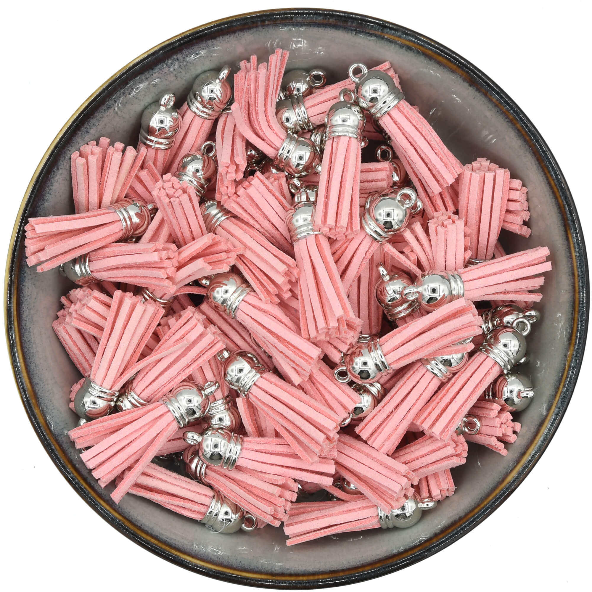 Leuke suède kwastjes van 35 mm, met zilveren kapje.