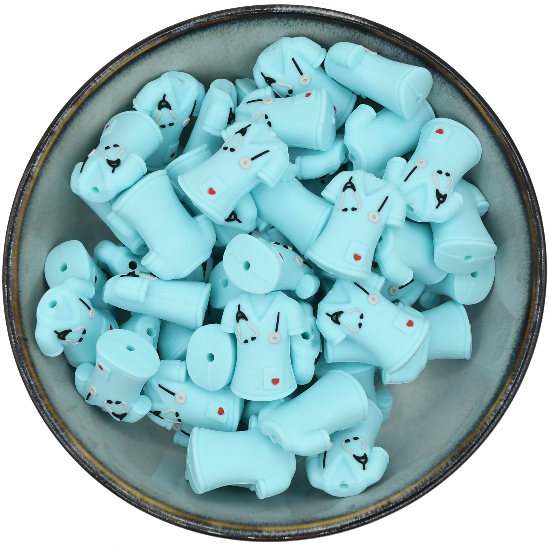 Leuke 3D siliconen kraal in de vorm van een verpleeguniform. Bijvoorbeeld leuk op een pen of badgehouder!