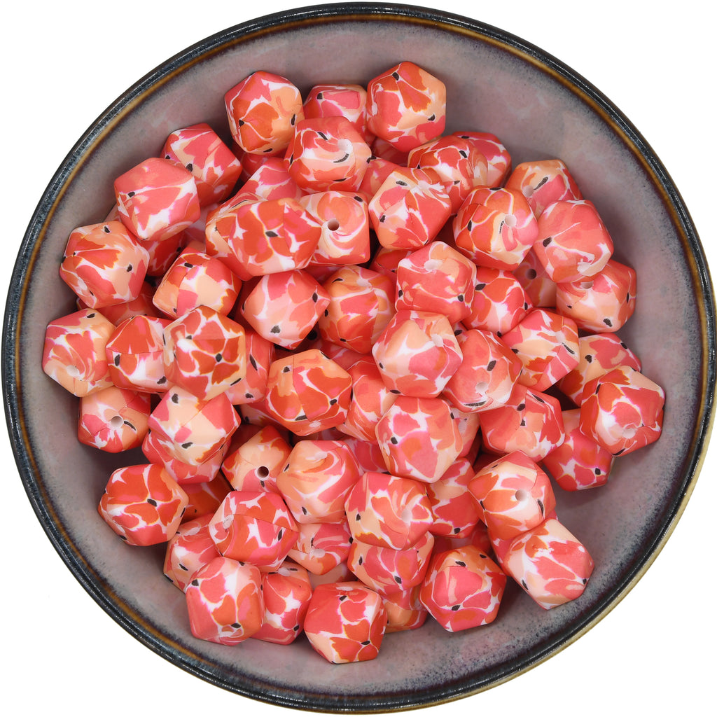 Superleuke witte kralen met oranje en rode bloemenprint.